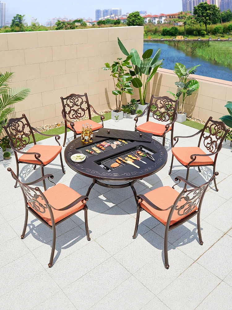アウトドア家具 ガーデンパティオ アルミ鋳造 炭火焼きテーブル 防腐加工 欧風デザイン 家庭用 室外バルコニーでリラックス - スタイリッシュな空間を演出し、友人や家族との素敵なひとときをお楽しみください!