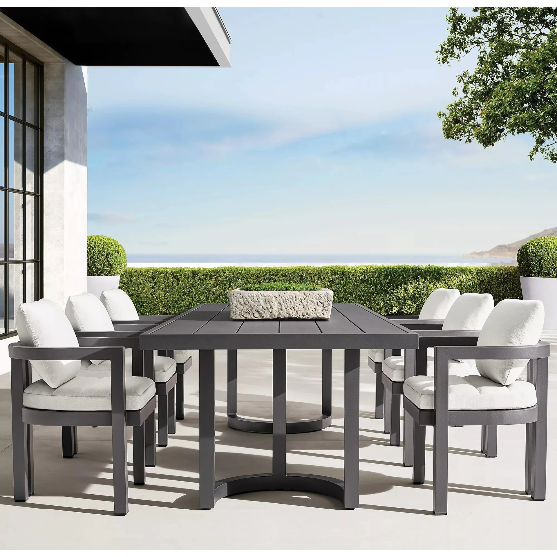 ヴァンパイ・アウトドアガーデンアルミ製ダイニングテーブル&チェアセット - 高級感溢れる別荘テラス用リラックス家具で、優雅な屋外体験をお楽しみください!