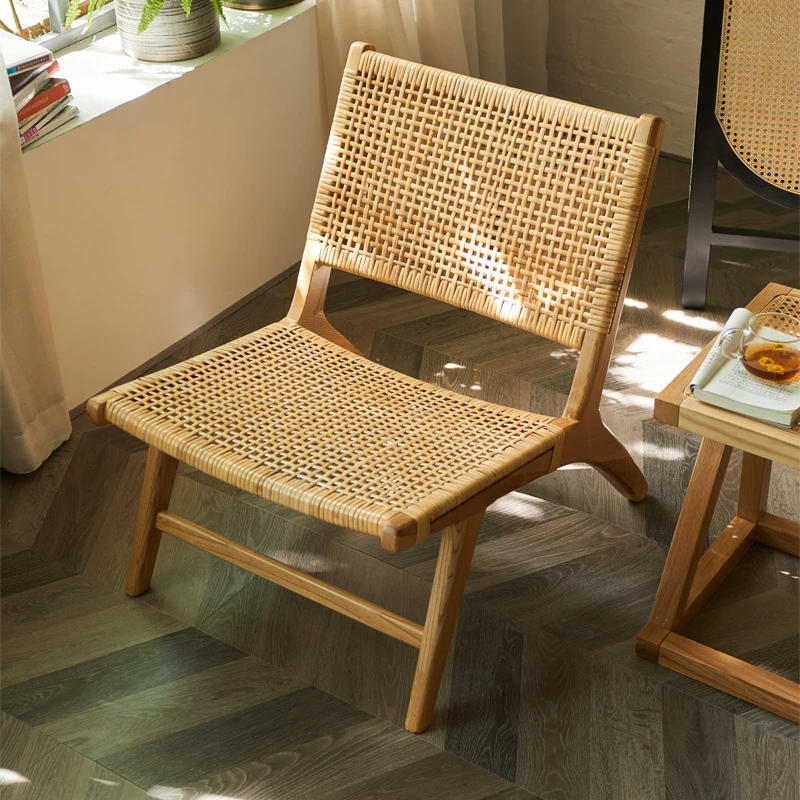 おしゃれな一人用ラタンチェア - 家庭用、リラックスできる背もたれ付き、コンパクトなデザインで、カフェや民宿にもぴったり!ネットで話題のトレンディなバンブーチェア。快適さとスタイルを両立!