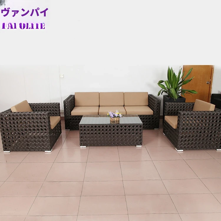 北欧風の現代的なデザイン!リゾート感溢れるラタン製ソファテーブルセット - ヴィラ、ホテル、プールサイドに最適なシンプルでおしゃれなアウトドア用家具!リラックスしたひとときをお楽しみください。