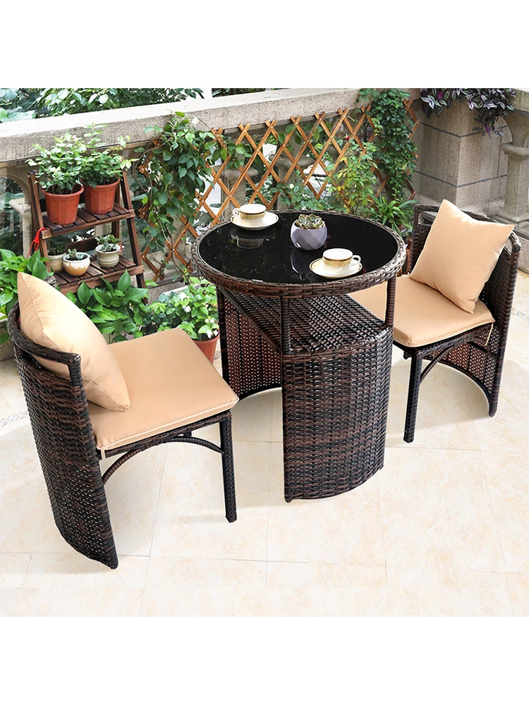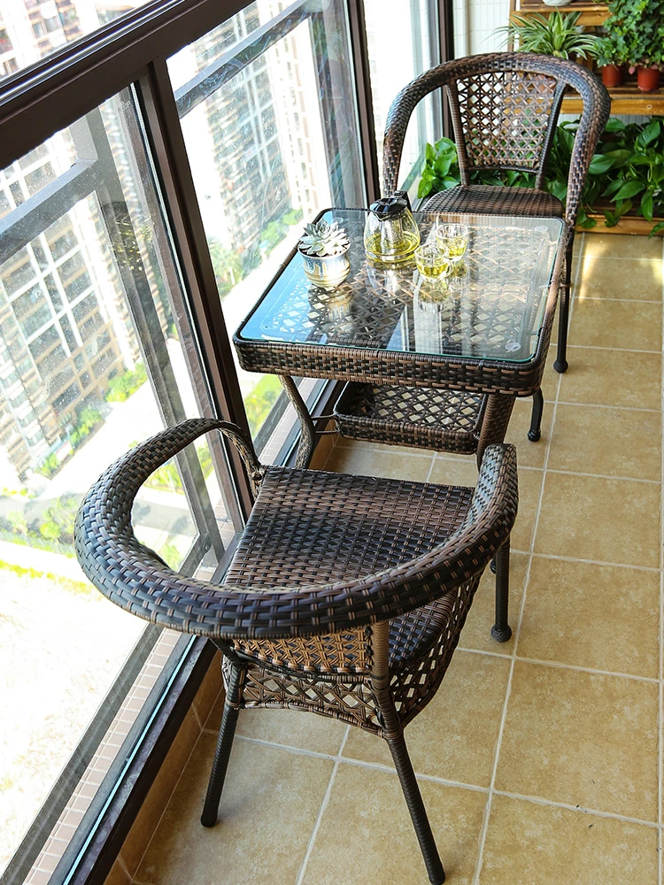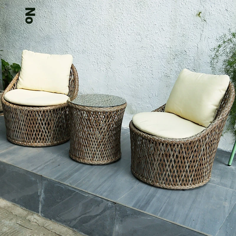 Vanpai Outdoor Garden Furniture Set - Rattan Chairs for Chinese Style Balconies, Perfect for Small Courtyards, Elegant European Design for Leisure and Relaxation.