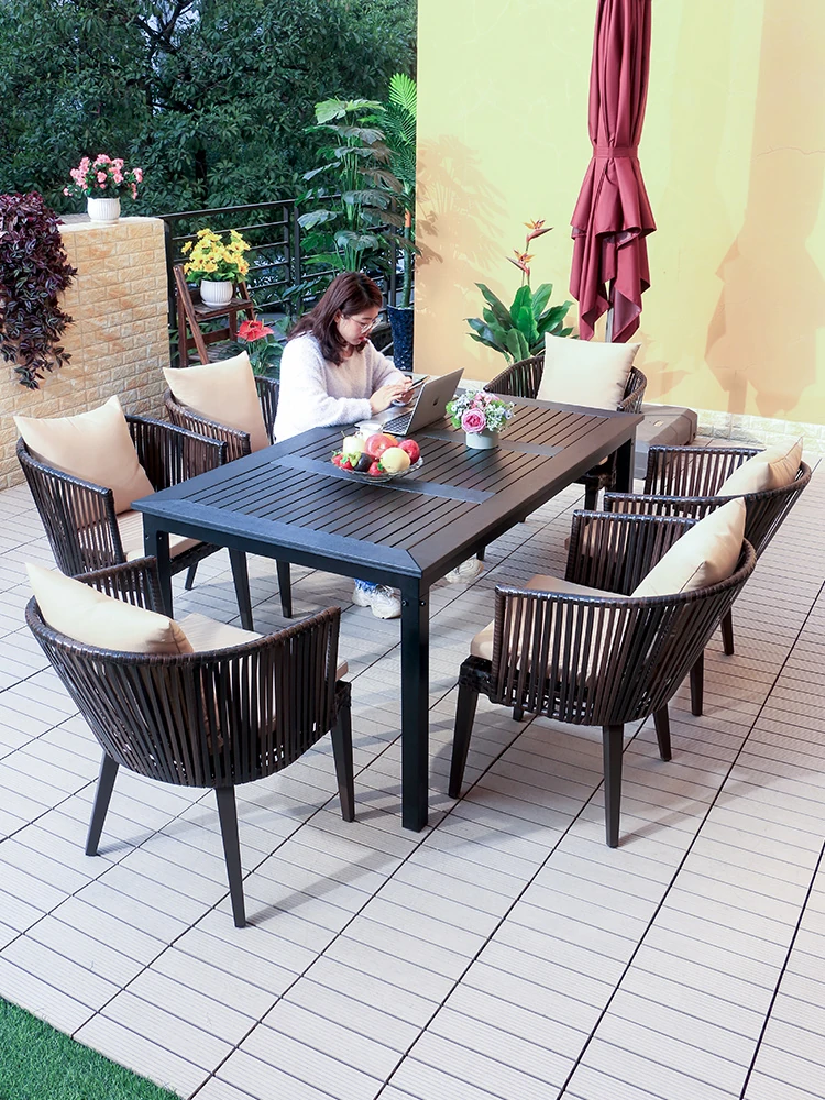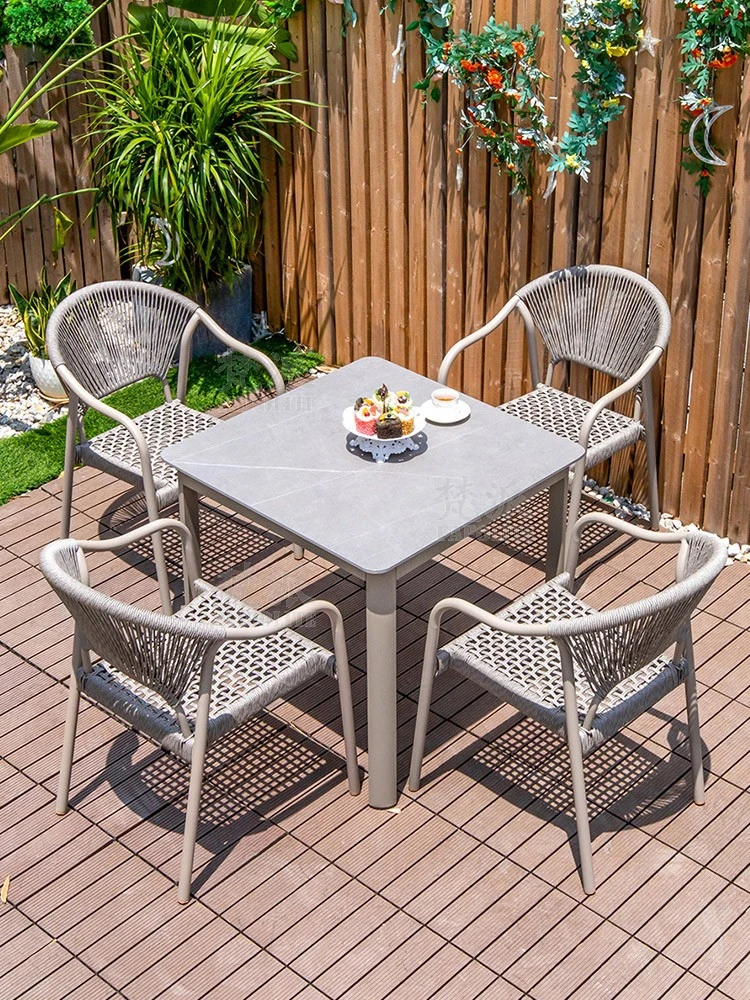 Vanpai Carbon Steel Outdoor Dining Set - Stylish Aluminum Table and Rattan Chairs for Milk Tea Shops, Patios, Terraces, and Balconies, Perfect for Outdoor Gatherings!
