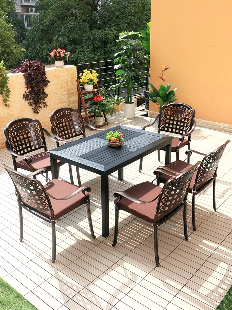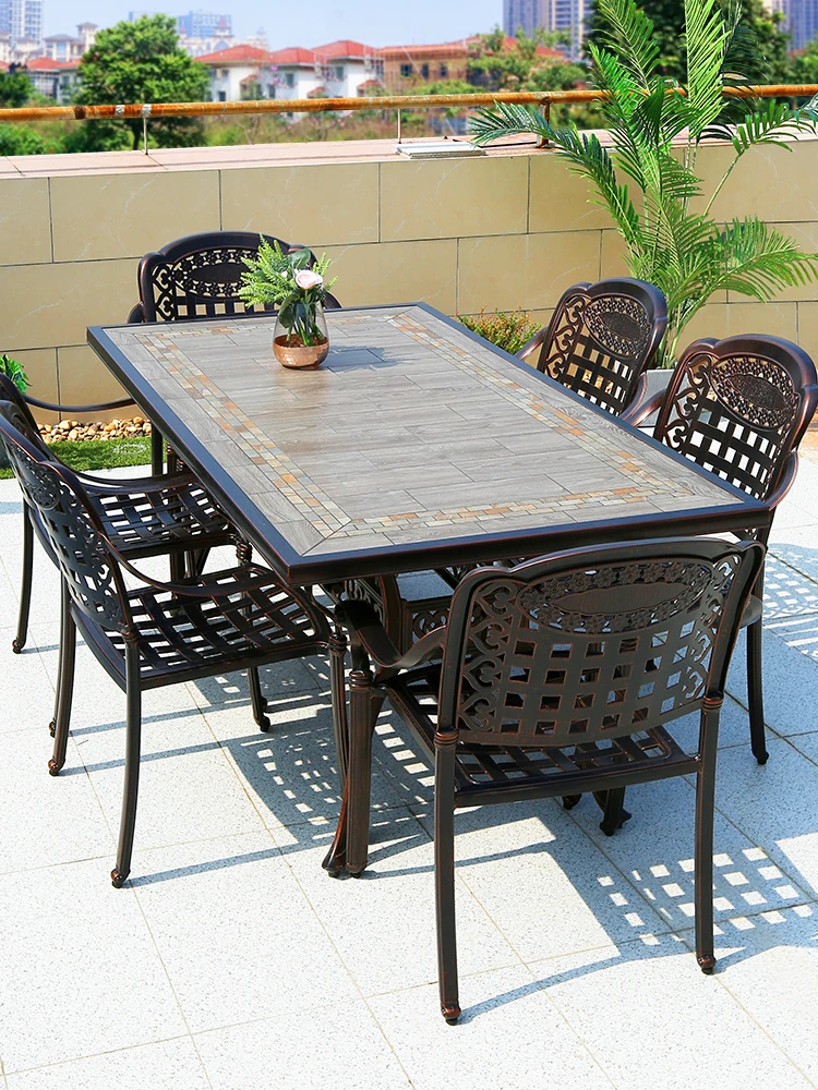 Elegant Outdoor Aluminum Dining Table and Chair Set for Garden, Patio, and Hotel - High-End Waterproof and UV-Resistant Furniture for Villas and Courtyards
