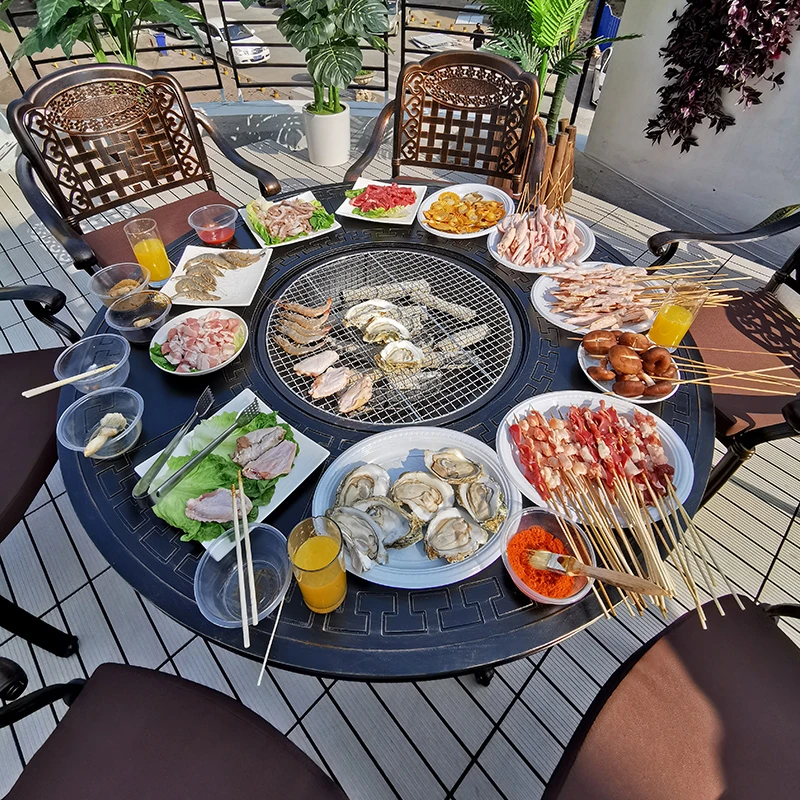 All-Aluminum Outdoor Patio Furniture Set with BBQ Grill Table - Stylish Garden Iron Furniture for Backyard Gatherings and Family Cookouts
