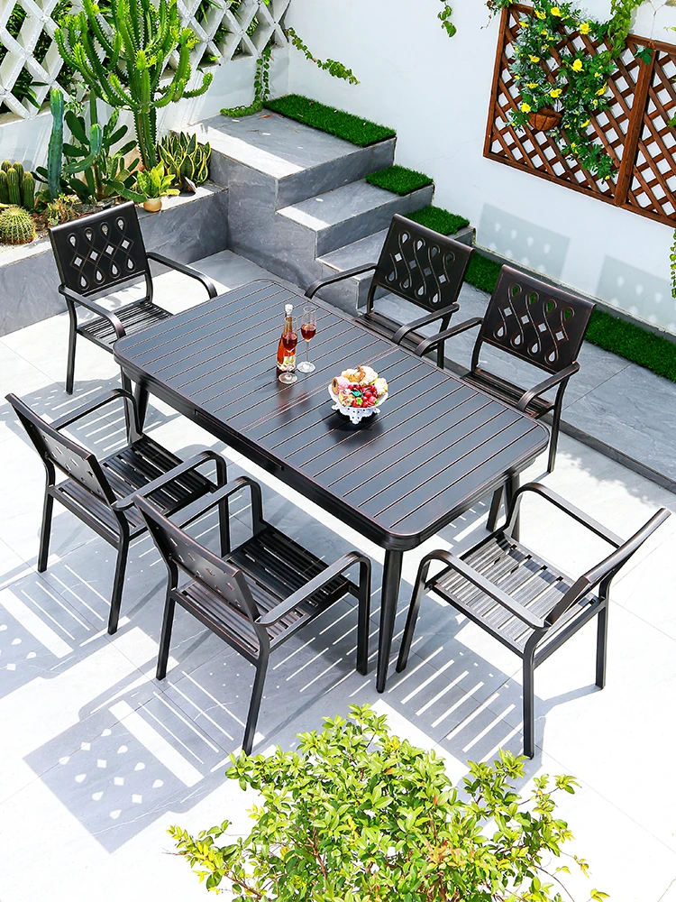 Vanpai Outdoor Aluminum Alloy Dining Set - Extendable Long Table and Chairs for Home, Perfect for Courtyards, Villas, Patios, and Balconies - Ideal for Relaxation and Entertaining
