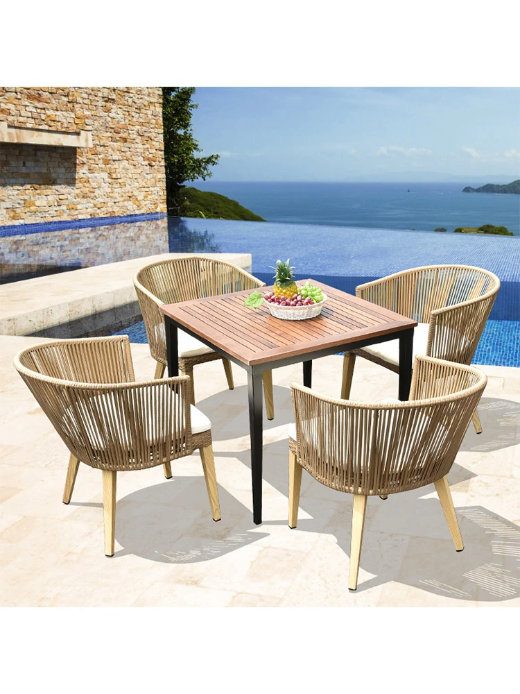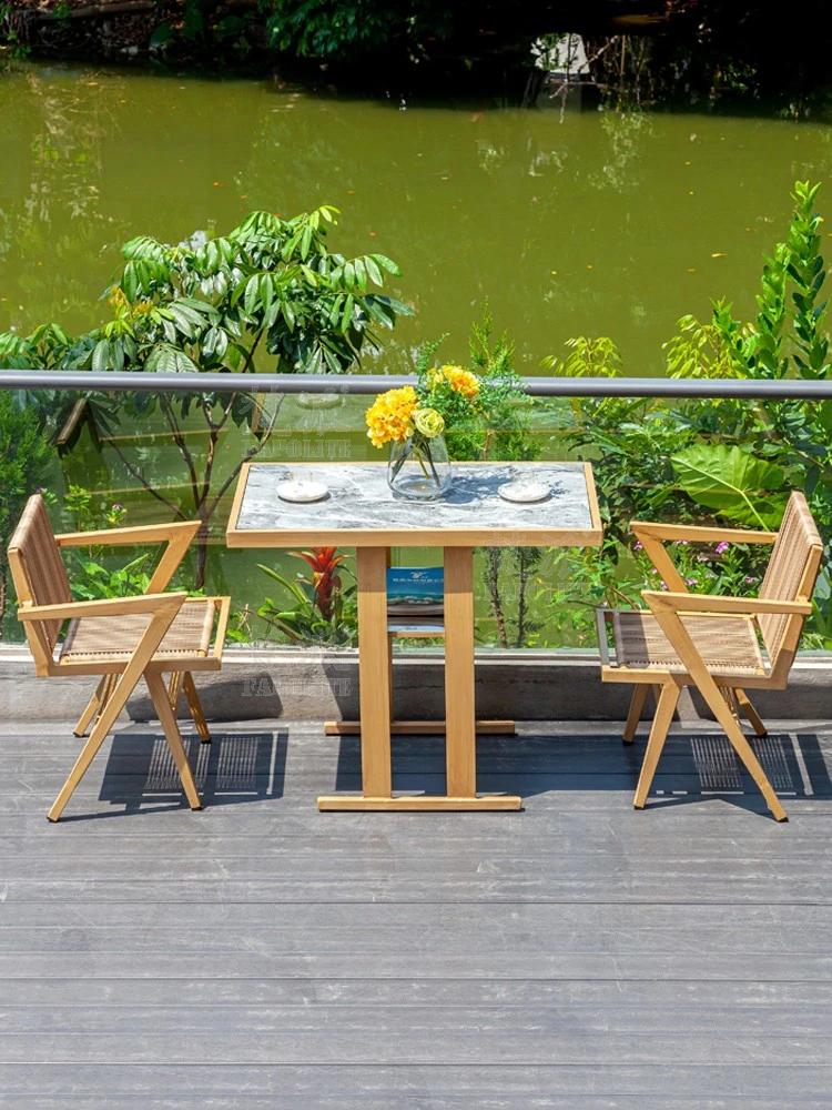 Nordic Style Teak Outdoor Patio Furniture Set – Perfect for Villas, Hotels, and Gardens – Includes Elegant Rattan Chairs and Table for Your Balcony or Terrace