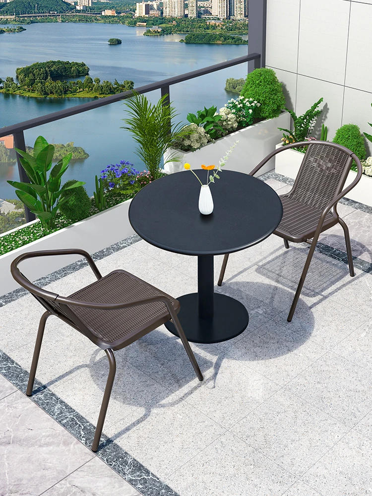 Waterproof and Sun-Resistant Outdoor Café Furniture Set - Modern Minimalist Chinese Style Balcony Table and Chairs for Small Spaces