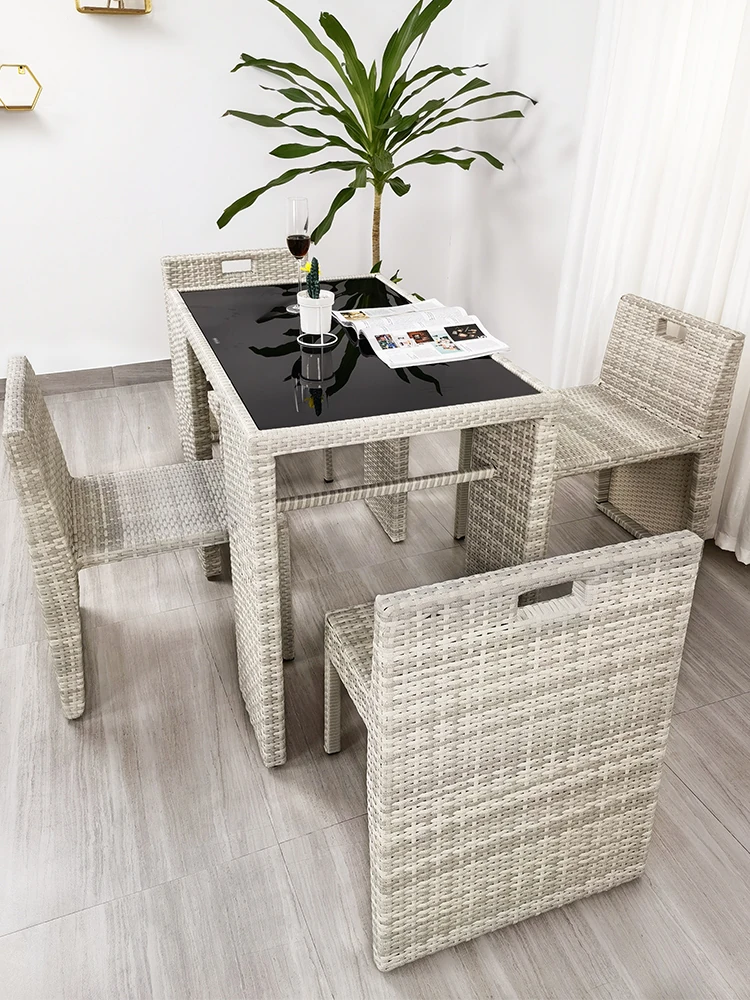 Outdoor Rattan Dining Set - Creative PE Wicker Chair and Square Coffee Table Combo for Courtyards and Balconies, Perfect for Guesthouses and Relaxation Spaces.