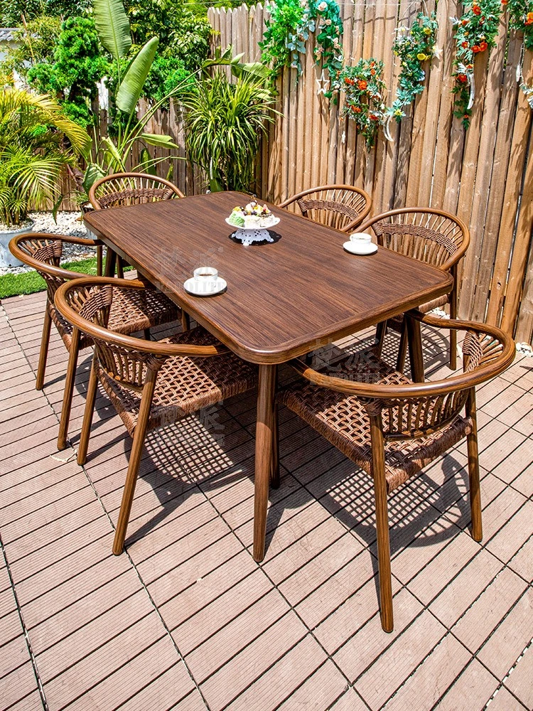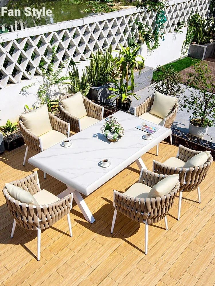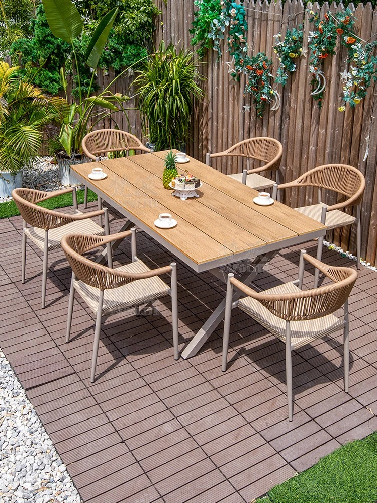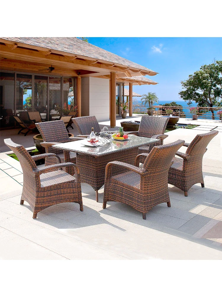 Outdoor Aluminum Alloy Rectangular Table and Chair Set - Waterproof and Sunproof Rattan Lounge for Villa Balcony and Garden - Perfect for Patio Gatherings and Relaxation