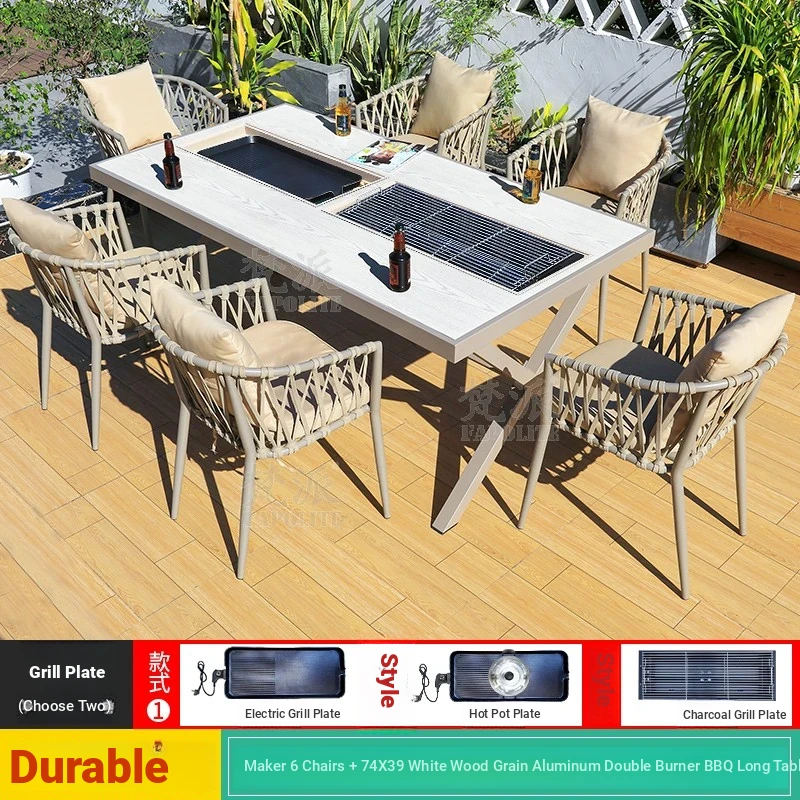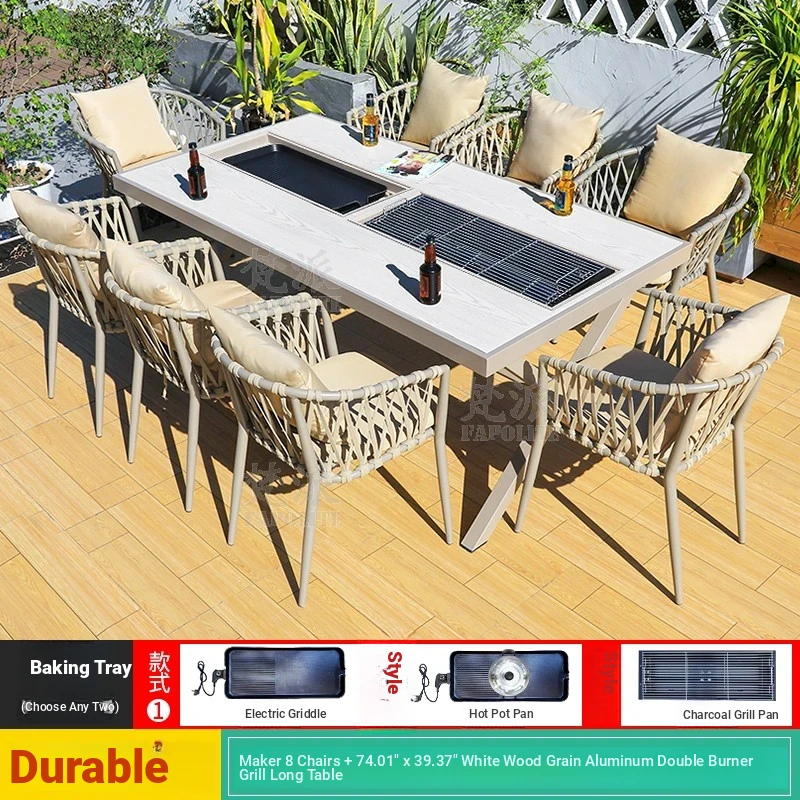 Outdoor BBQ Dining Set - Versatile Electric and Charcoal Grill Table and Chairs for Patios, Gardens, and Villas - Perfect for Your Outdoor Gatherings!