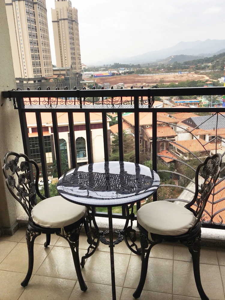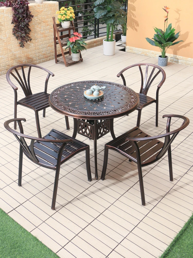 Chinese-Style Outdoor Balcony Leisure Table and Chair Set - Compact Design for Small Spaces, Waterproof and Sun-Resistant for Gardens and Courtyards
