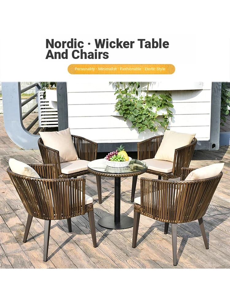 Vanpai Outdoor Dining Set - Stylish Rattan Lounge Chairs & Weather-Resistant Plastic Wood Tables for Villas, Courtyards, and Cafes - Perfect for Relaxation in Your Garden or Patio!