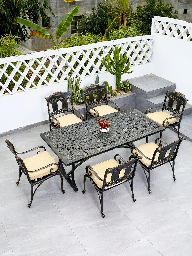 Outdoor Aluminum Alloy Long Table and Chair Set - Stylish Patio Furniture for Gardens and Villas, Perfect for Relaxing in Your Outdoor Space