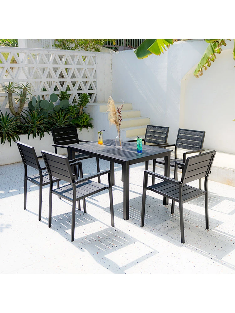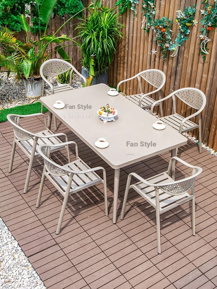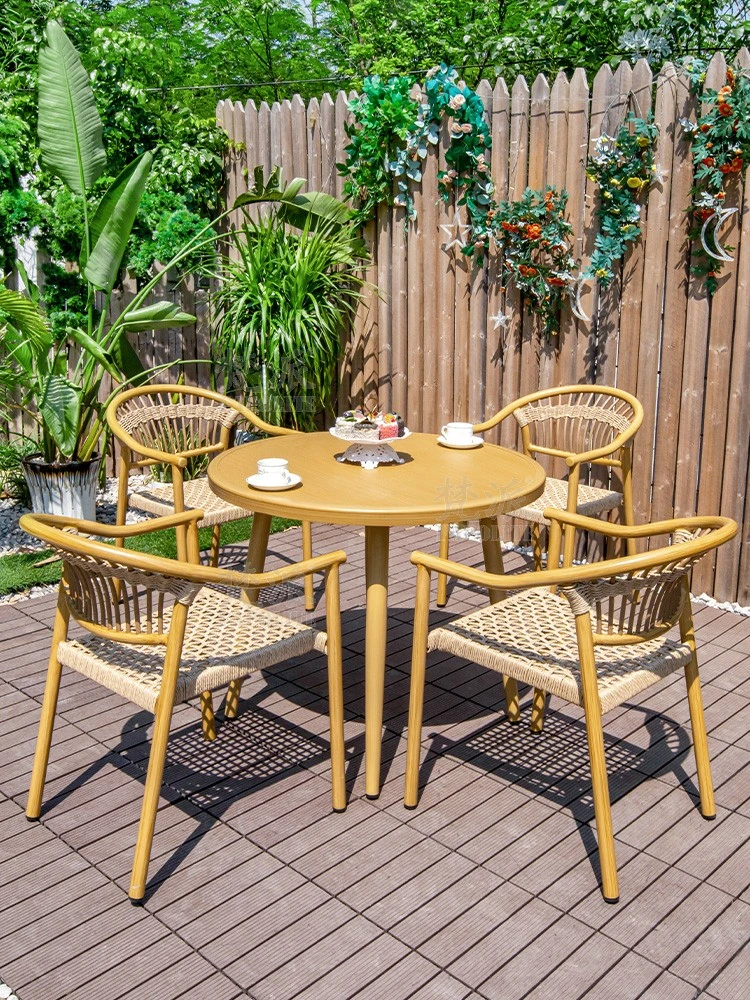 Modern Minimalist Outdoor Patio Furniture Set - Stylish Plastic-Wood Table and Chair Combo for Cafés, Tea Shops, and Trendy Hangouts