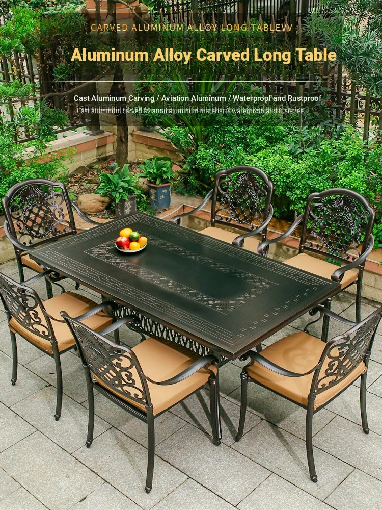 Vivid Garden Outdoor Dining Set - Stylish Cast Aluminum and Iron Furniture for Patios, Sun-Resistant Tea Table, Perfect for Villas and Long Outdoor Gatherings