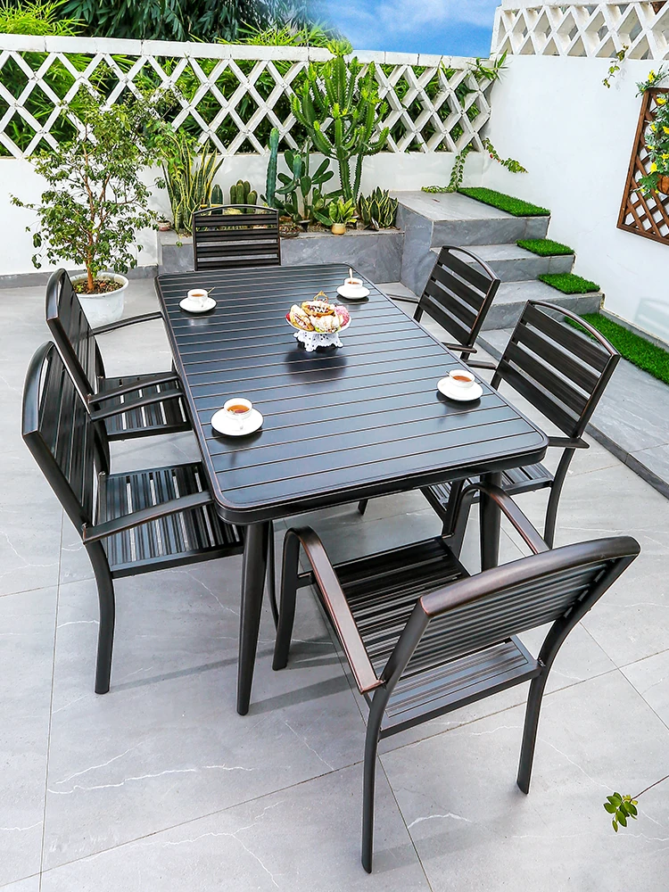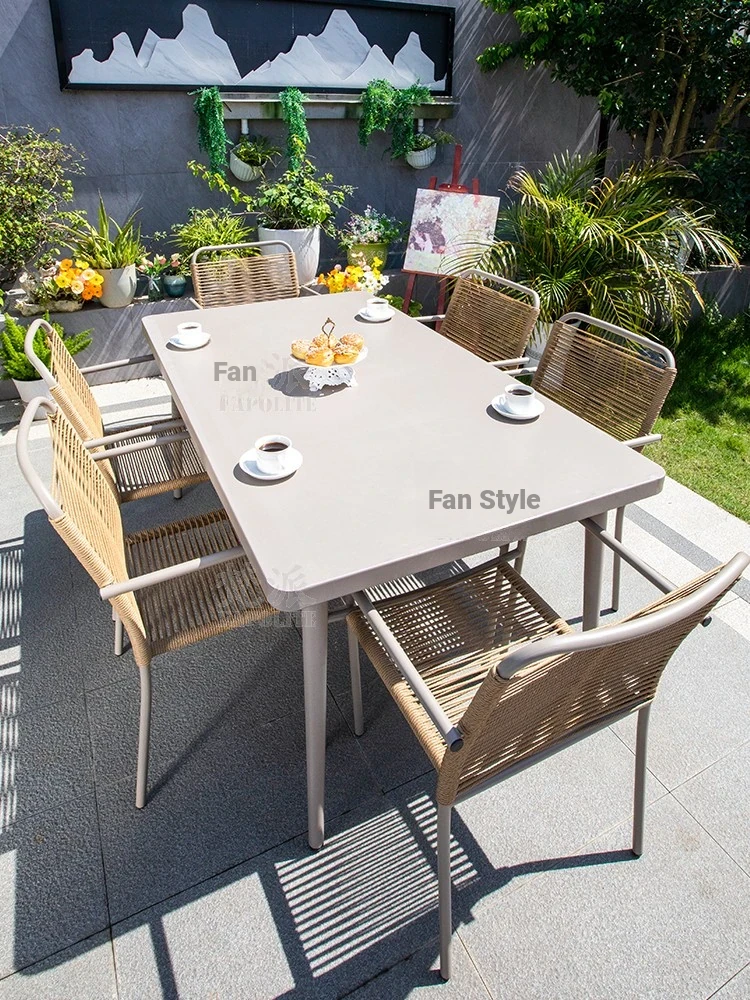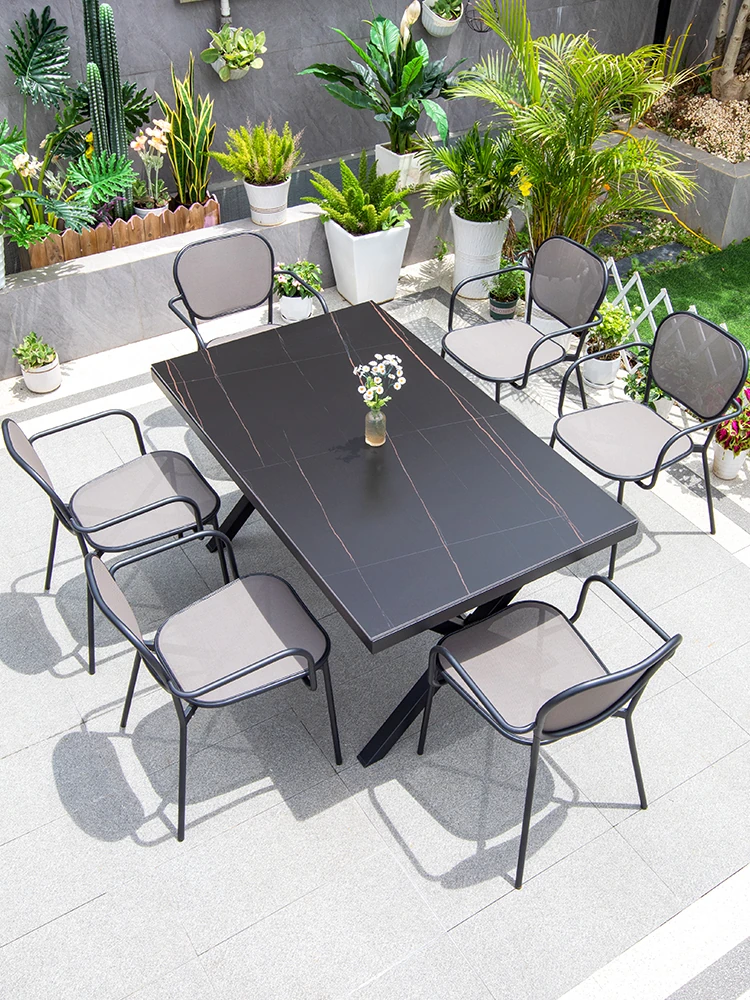 Vanpai Outdoor Rock Slab Dining Set - Waterproof Aluminum Patio Furniture for Modern Minimalist Luxury - Stylish Long Table and Chair Combination for Your Courtyard