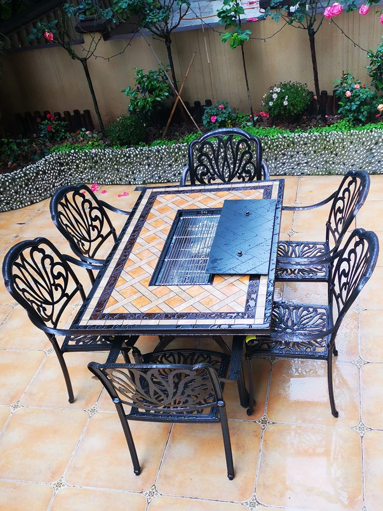 Outdoor BBQ Dining Set - European Style Iron Patio Furniture for Home, Villa, and Balcony - Perfect for Relaxing Gatherings and Alfresco Dining in Your Garden or Terrace