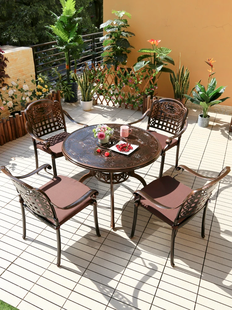 Outdoor Aluminum Patio Furniture Set - Waterproof, Stylish Iron Table and Chairs for Gardens, Villas, and Courtyards - Perfect for Relaxation and Entertaining!
