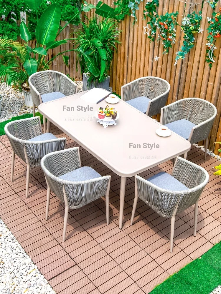 Nordic Outdoor Patio Furniture Set - Water-Resistant and Sun-Proof Rattan Chairs and Dining Table for Villas and Gardens, Perfect for Your Outdoor Terrace!