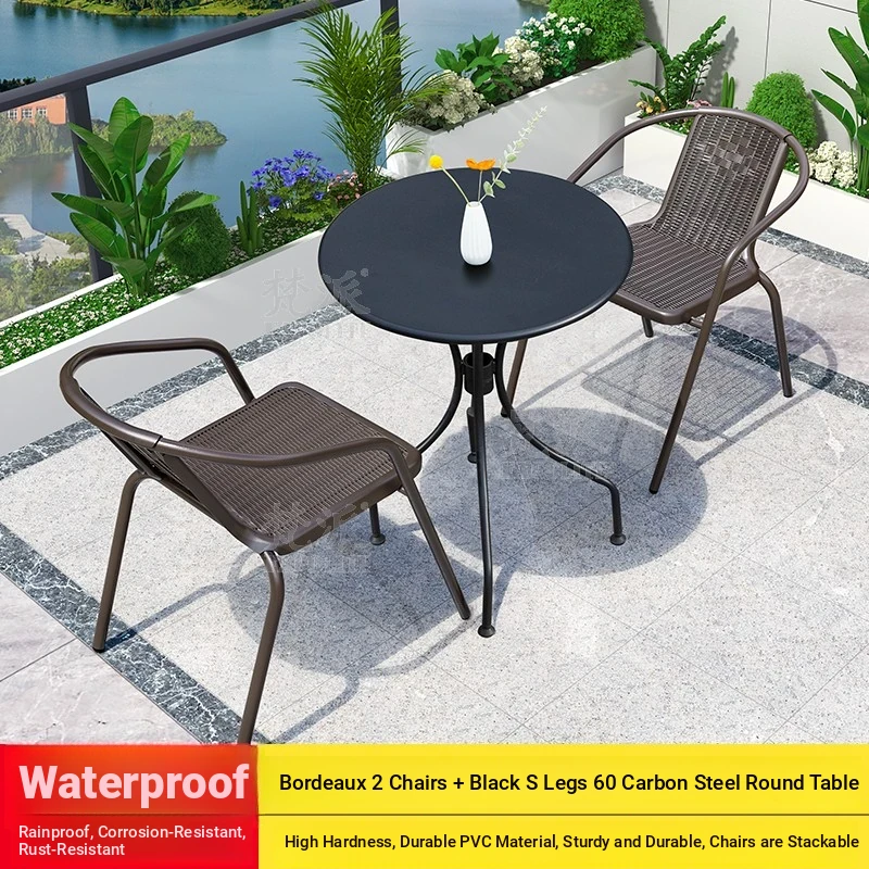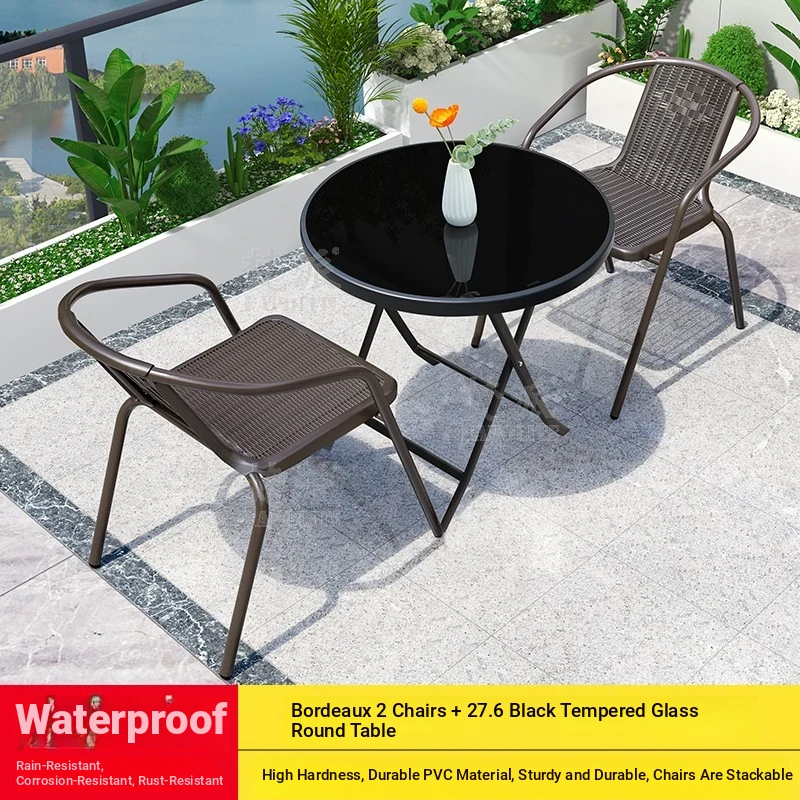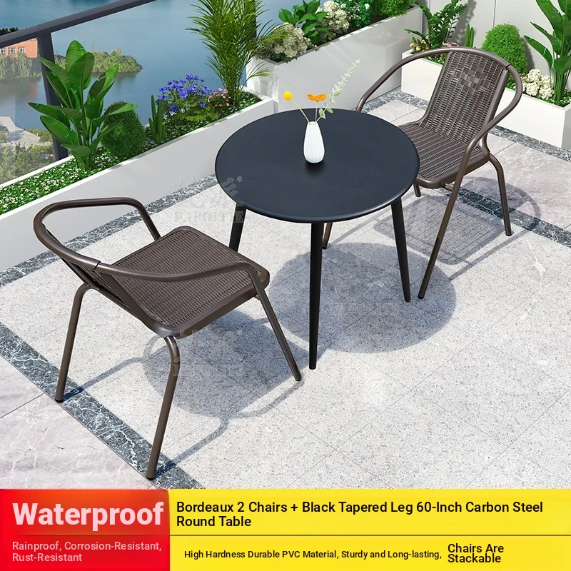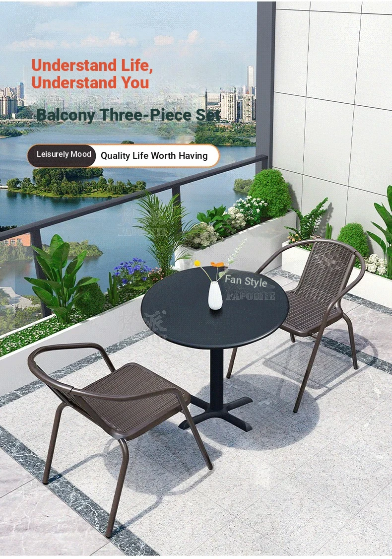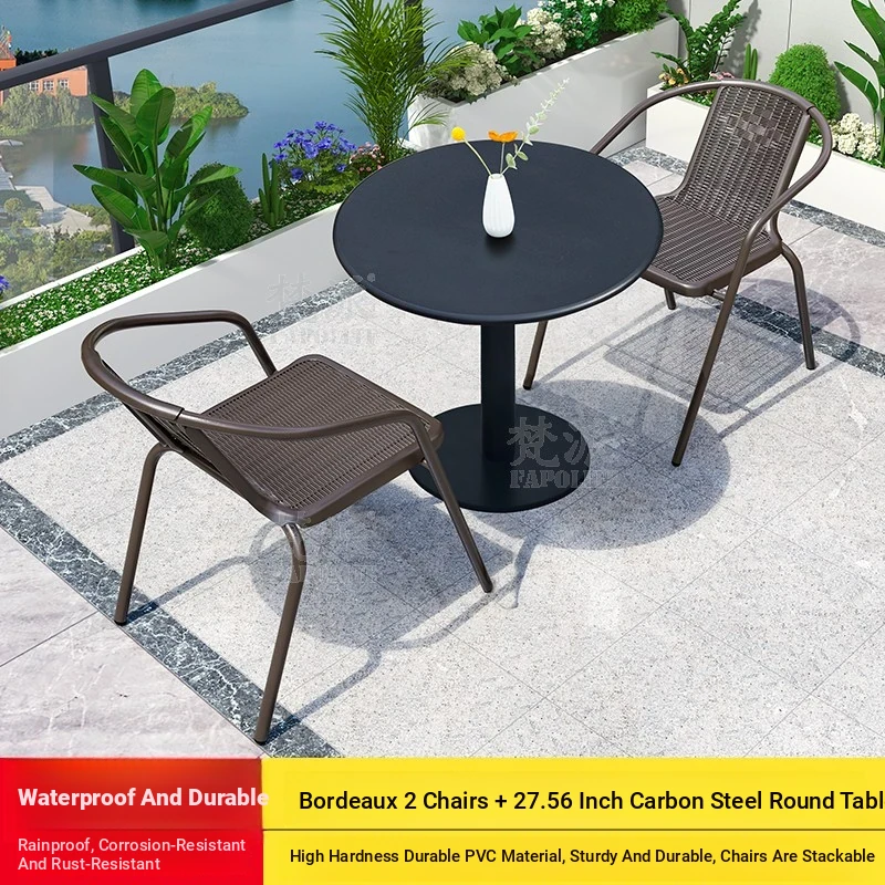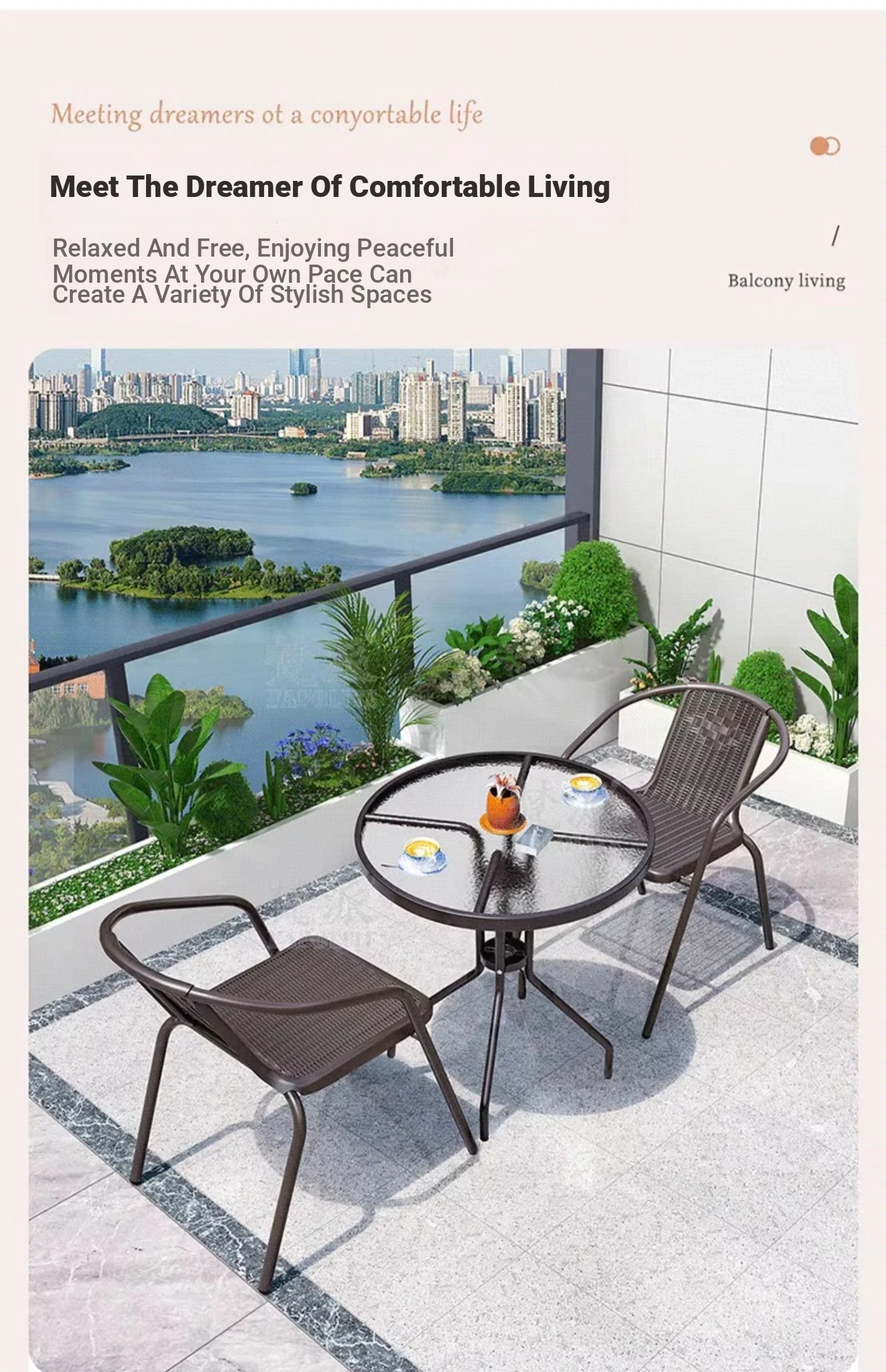 Elegant Rattan-Style Balcony Bistro Set - 3-Piece Table and Chair Combo with Waterproof Carbon Steel, Perfect for Leisure and Tea Time Enjoyment