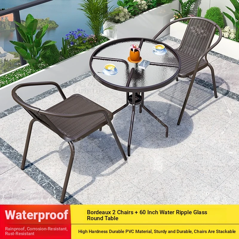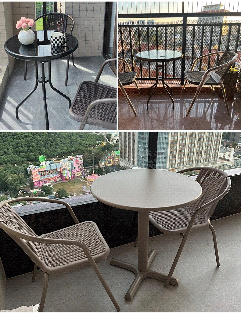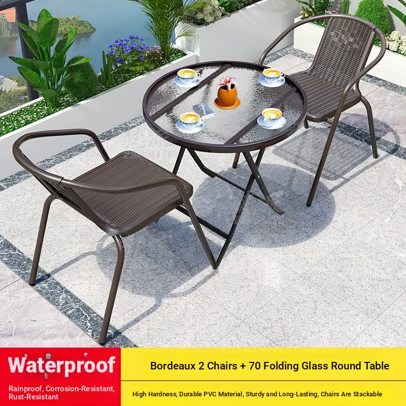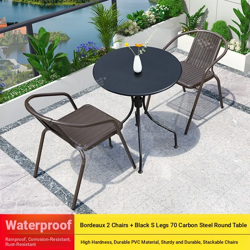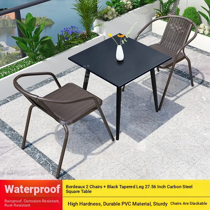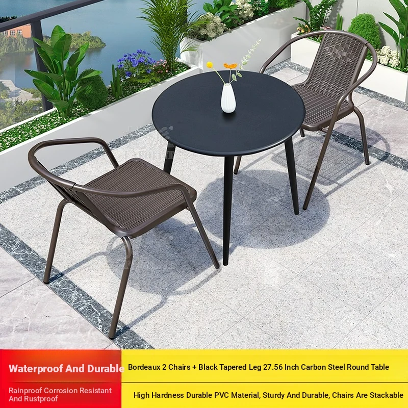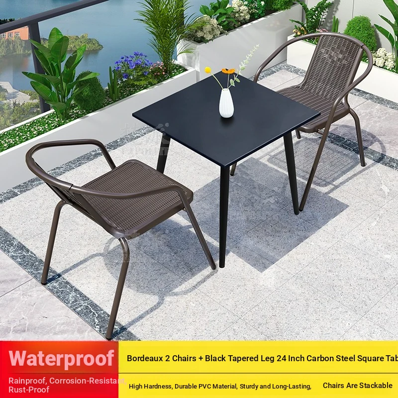 Elegant Rattan-Style Balcony Bistro Set - 3-Piece Table and Chair Combo with Waterproof Carbon Steel, Perfect for Leisure and Tea Time Enjoyment