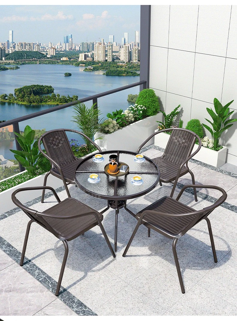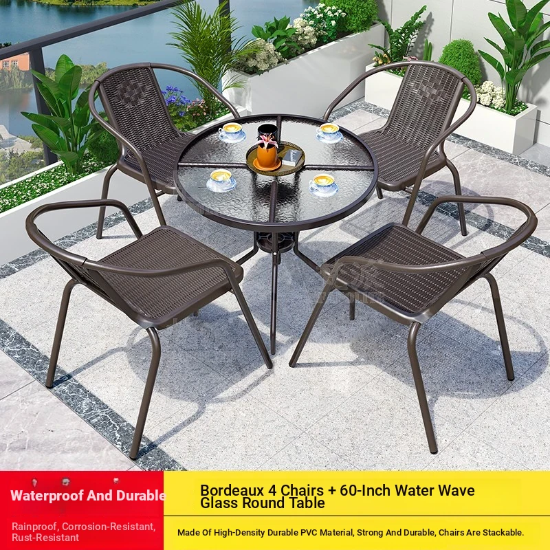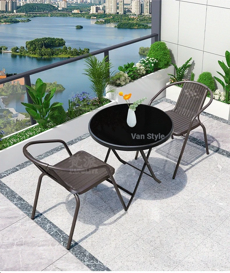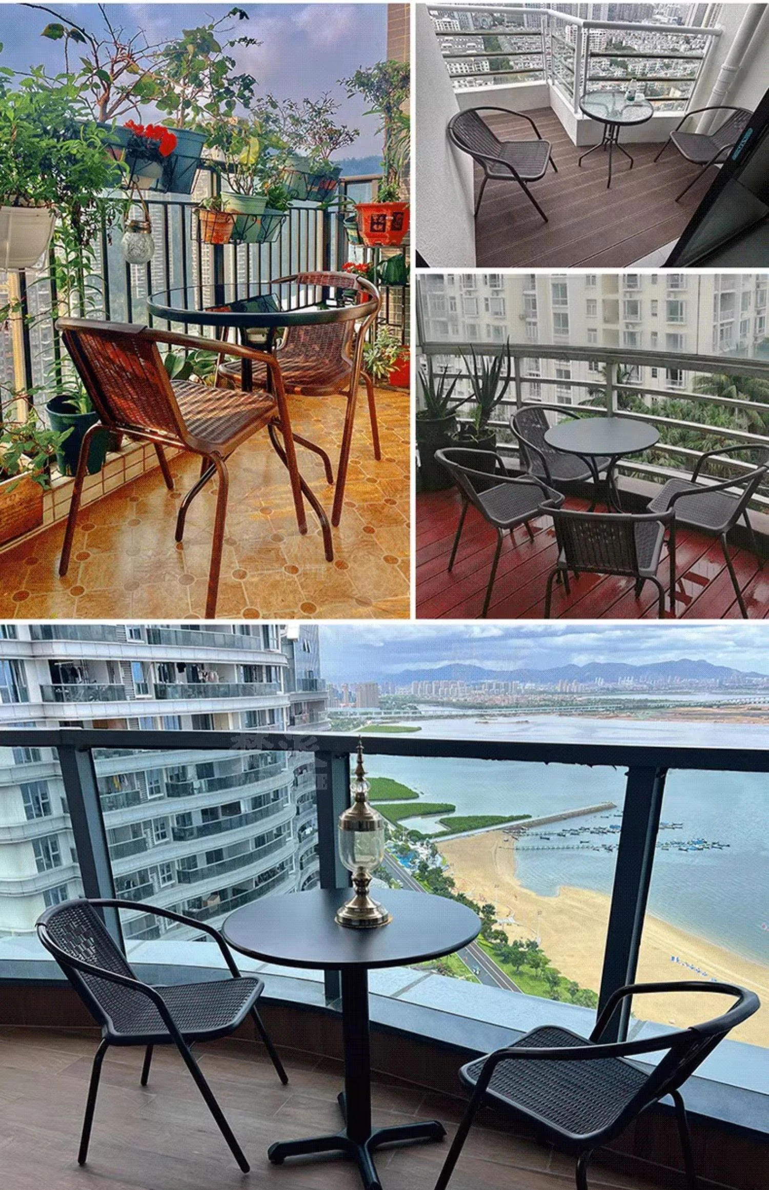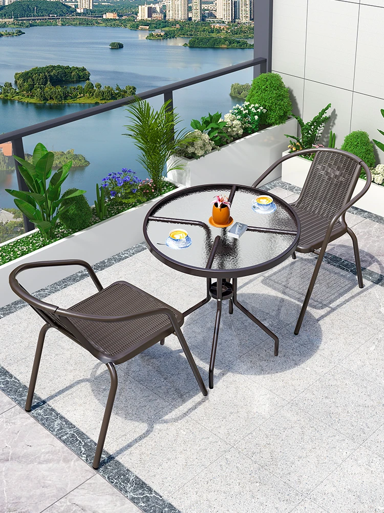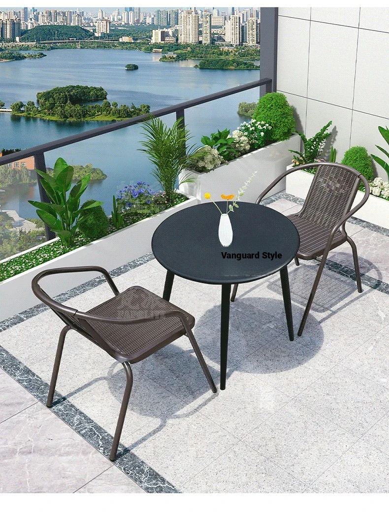 Elegant Rattan-Style Balcony Bistro Set - 3-Piece Table and Chair Combo with Waterproof Carbon Steel, Perfect for Leisure and Tea Time Enjoyment