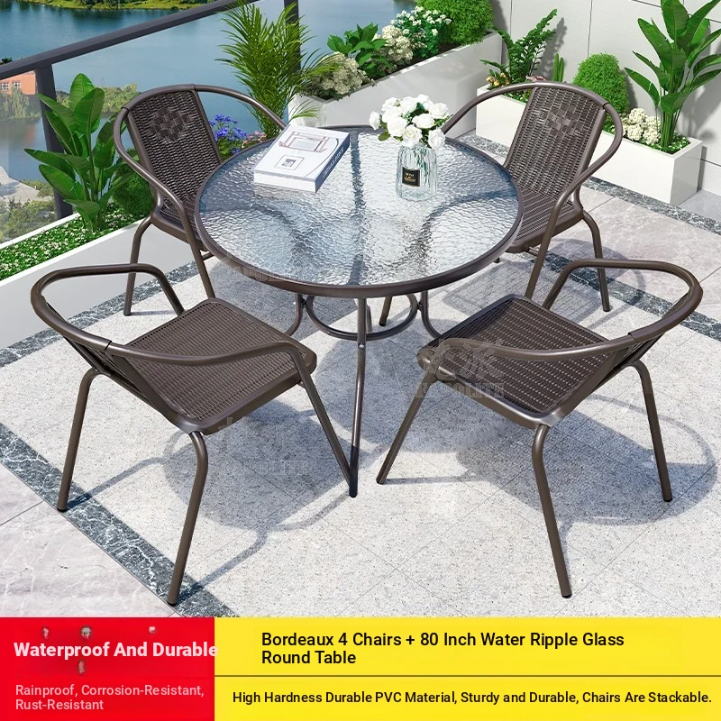 Bordeaux 4 chairs +23.62in water pattern glass round table
