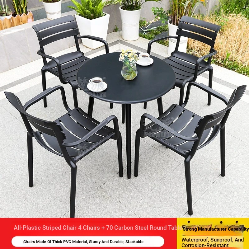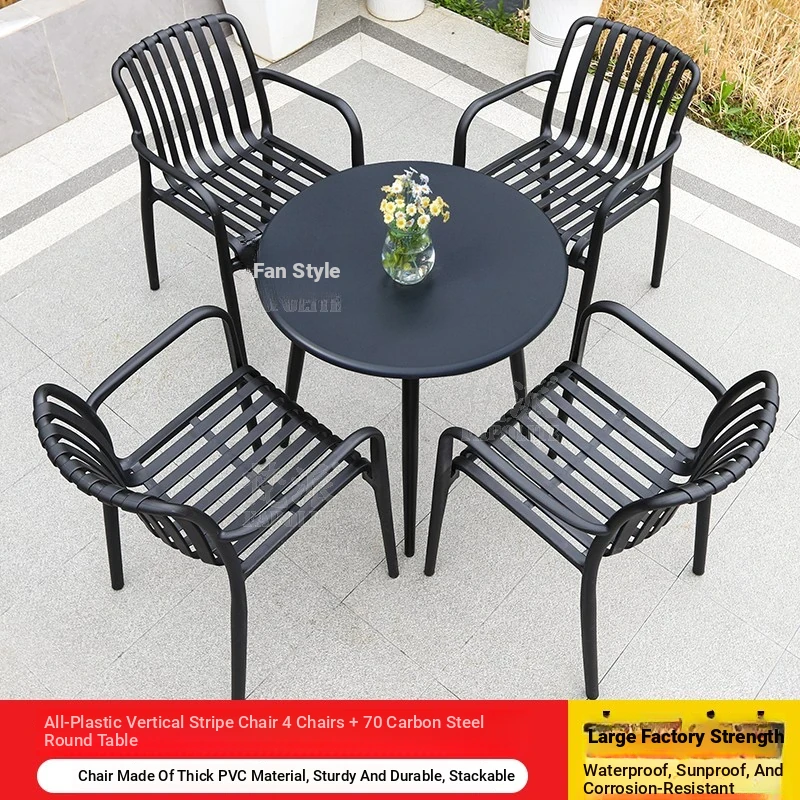 Vertical pattern Chair 4 chairs +70 carbon steel round table