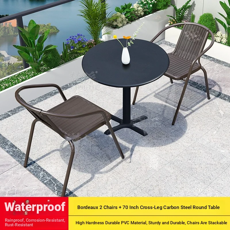 Bordeaux 2 Chairs + carbon steel 27.56in cross foot round table