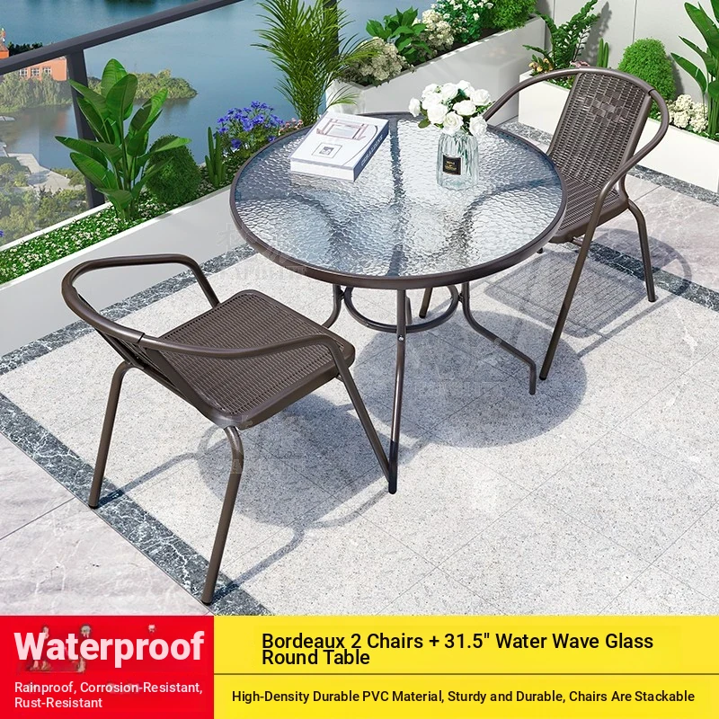 Bordeaux 2 Chairs +23.62in water pattern glass round table-special price