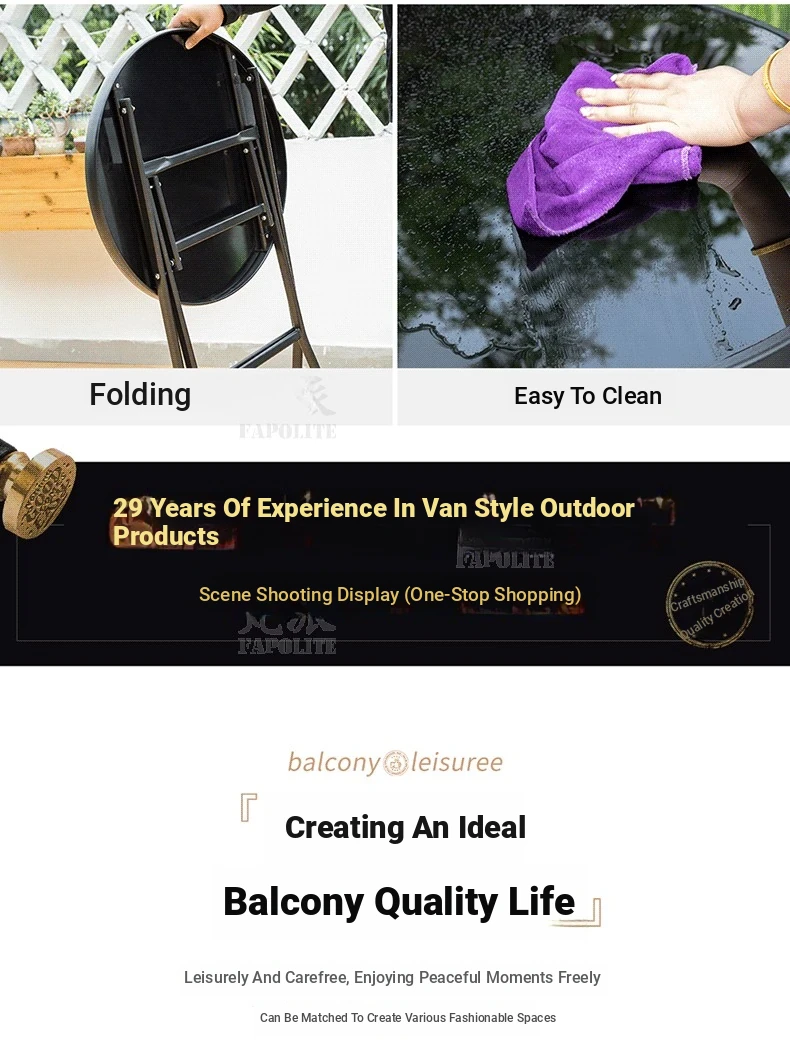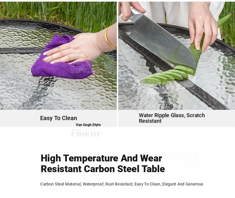 Bordeaux 2 Chairs +27.56in Foldable water pattern glass round table
