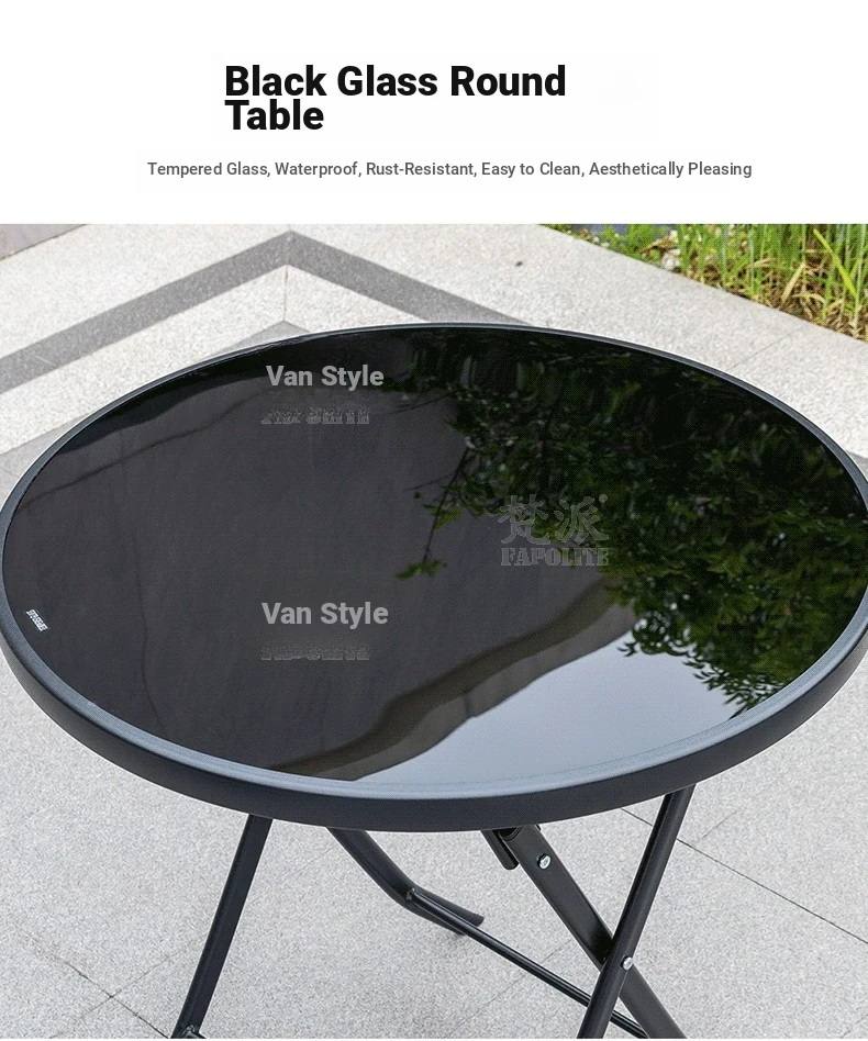 Bordeaux 2 Chairs +27.56in Foldable black glass round table