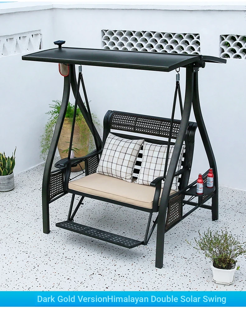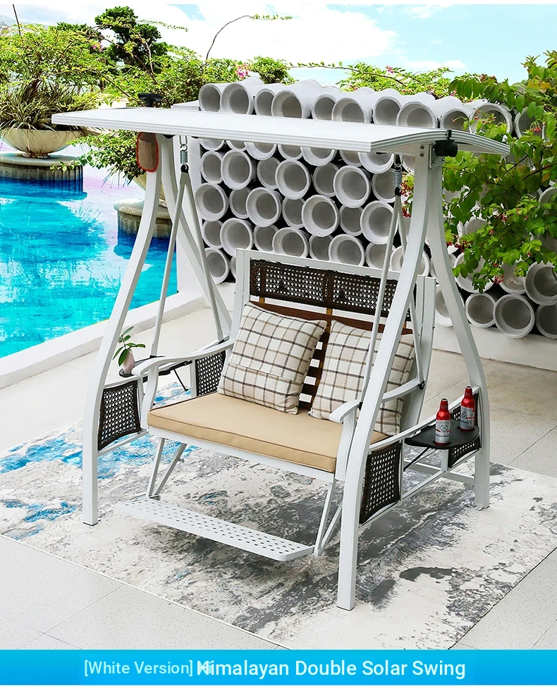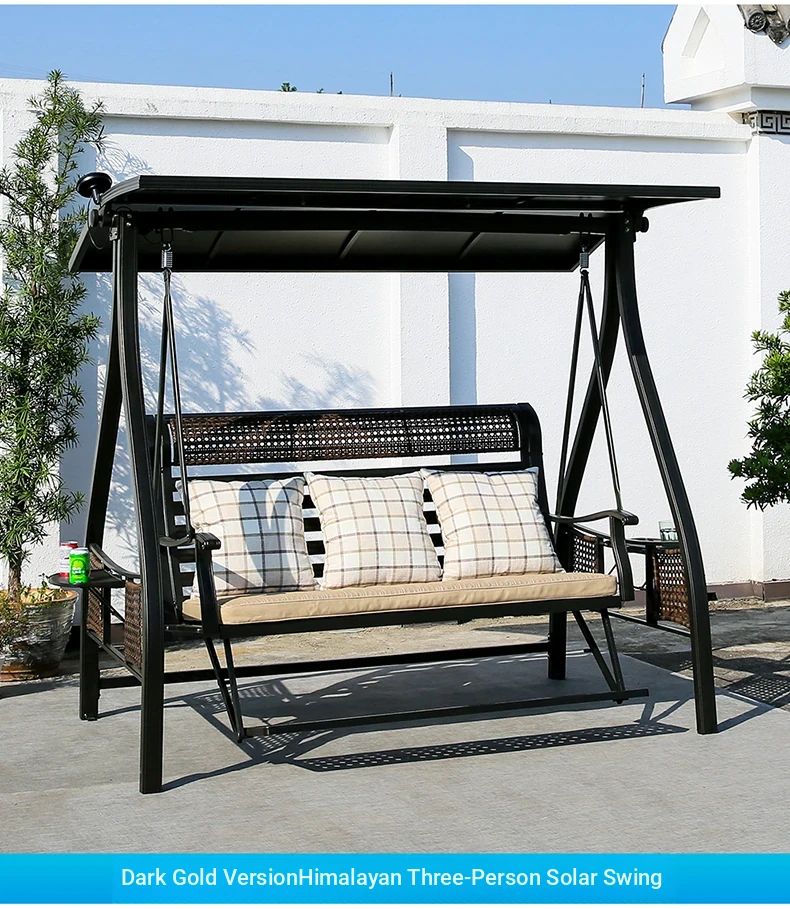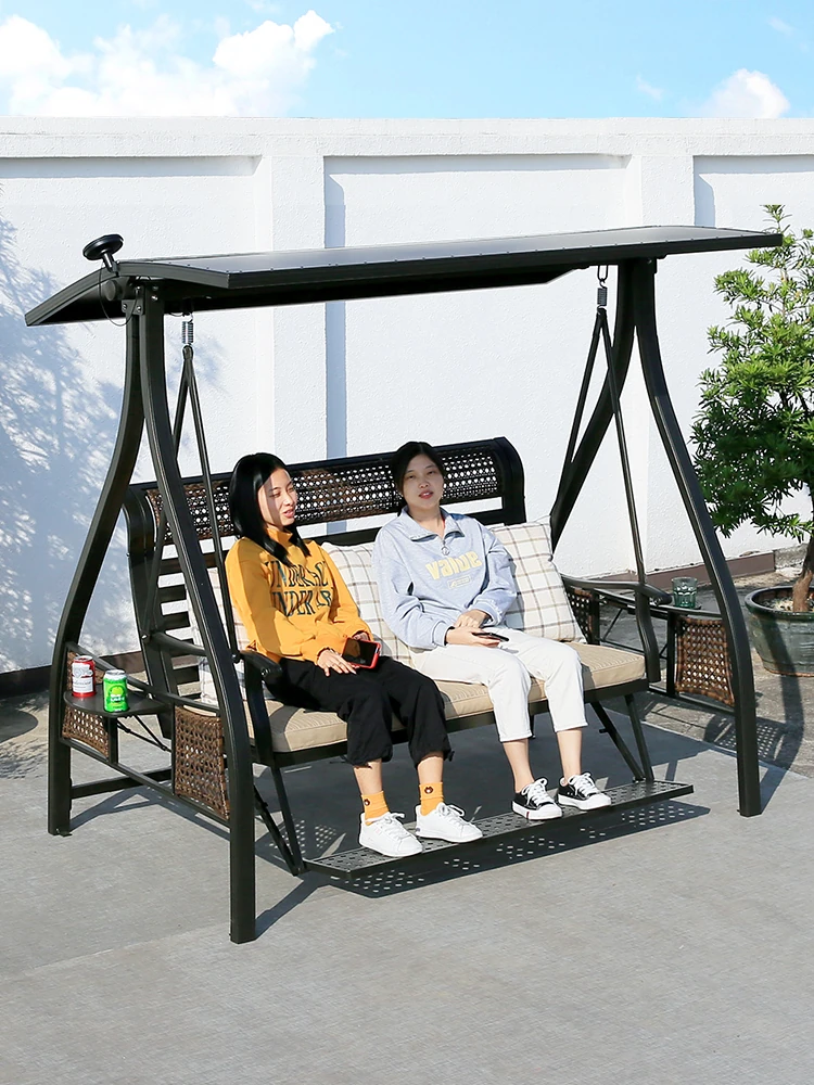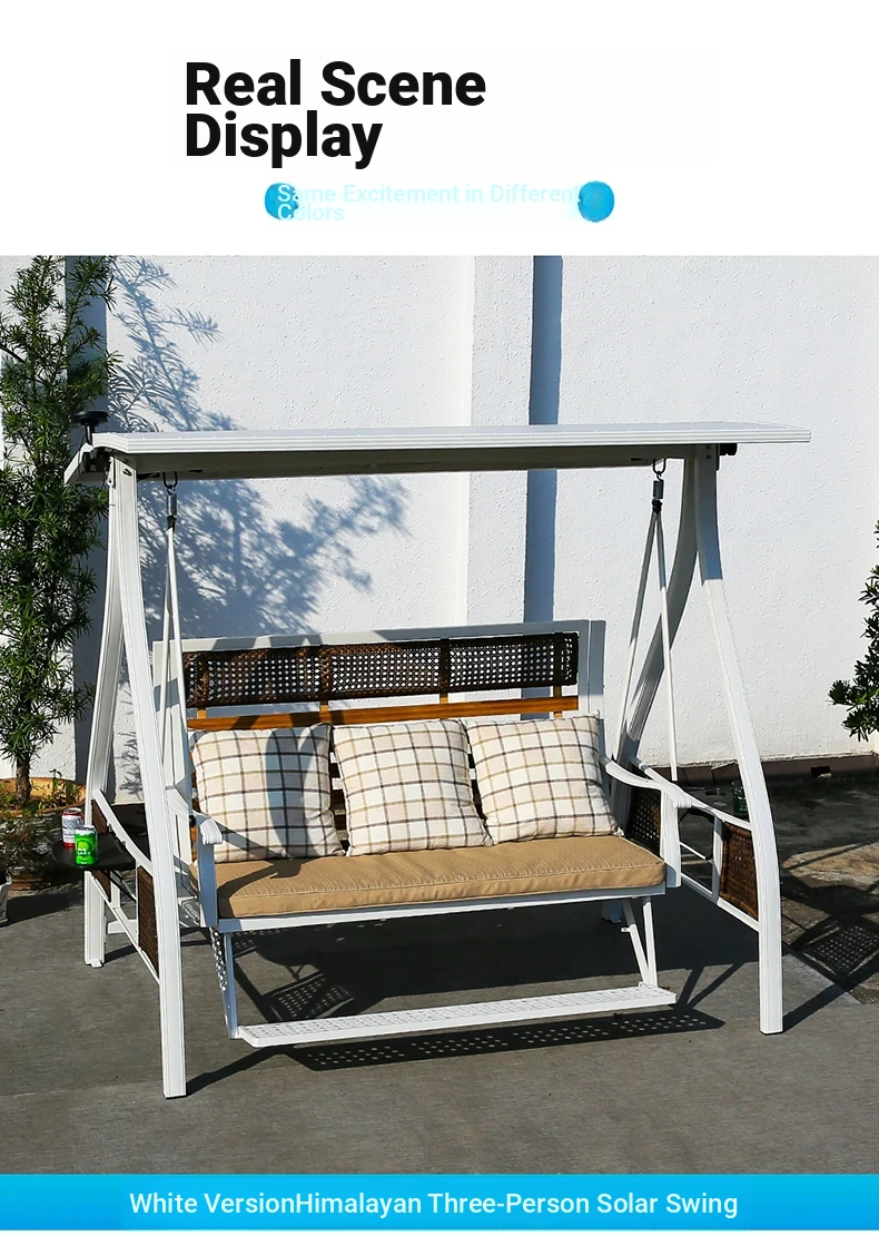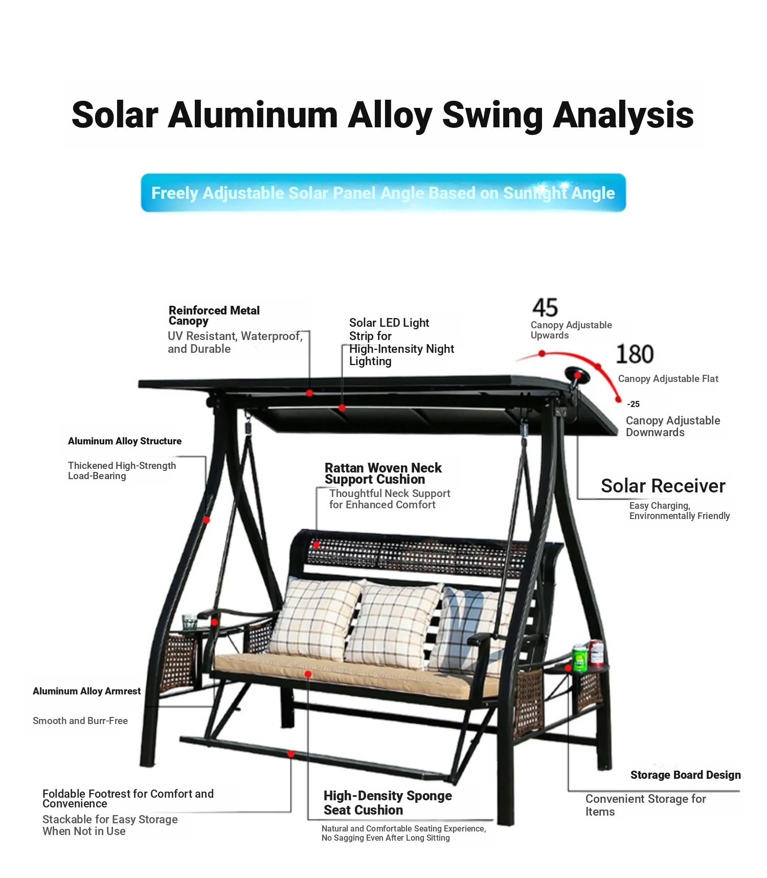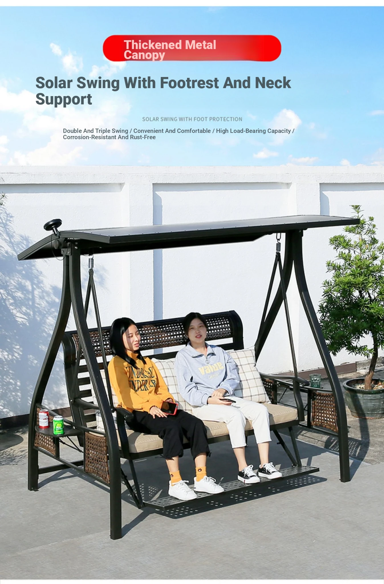Outdoor Balcony Swing Chair - Rainproof Aluminum Alloy Patio Swing for 2-3 People, Stylish Solar-Powered Iron Garden Swing Seat