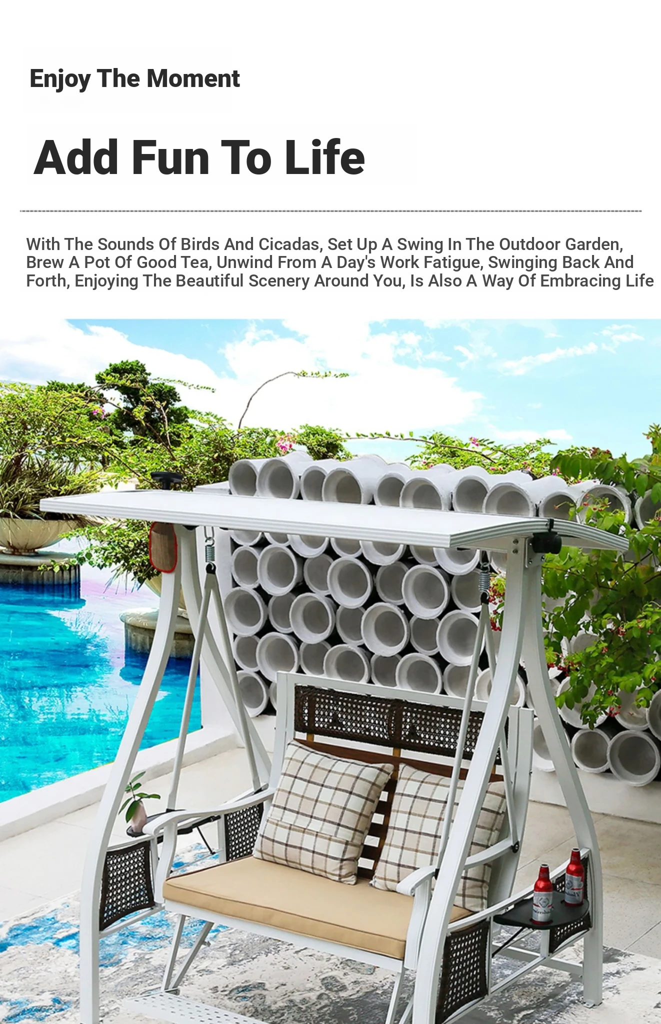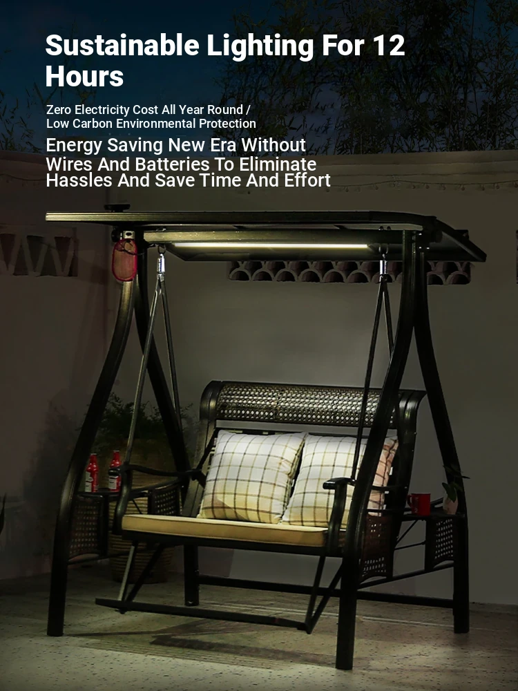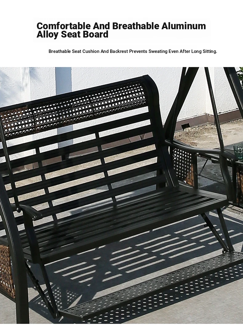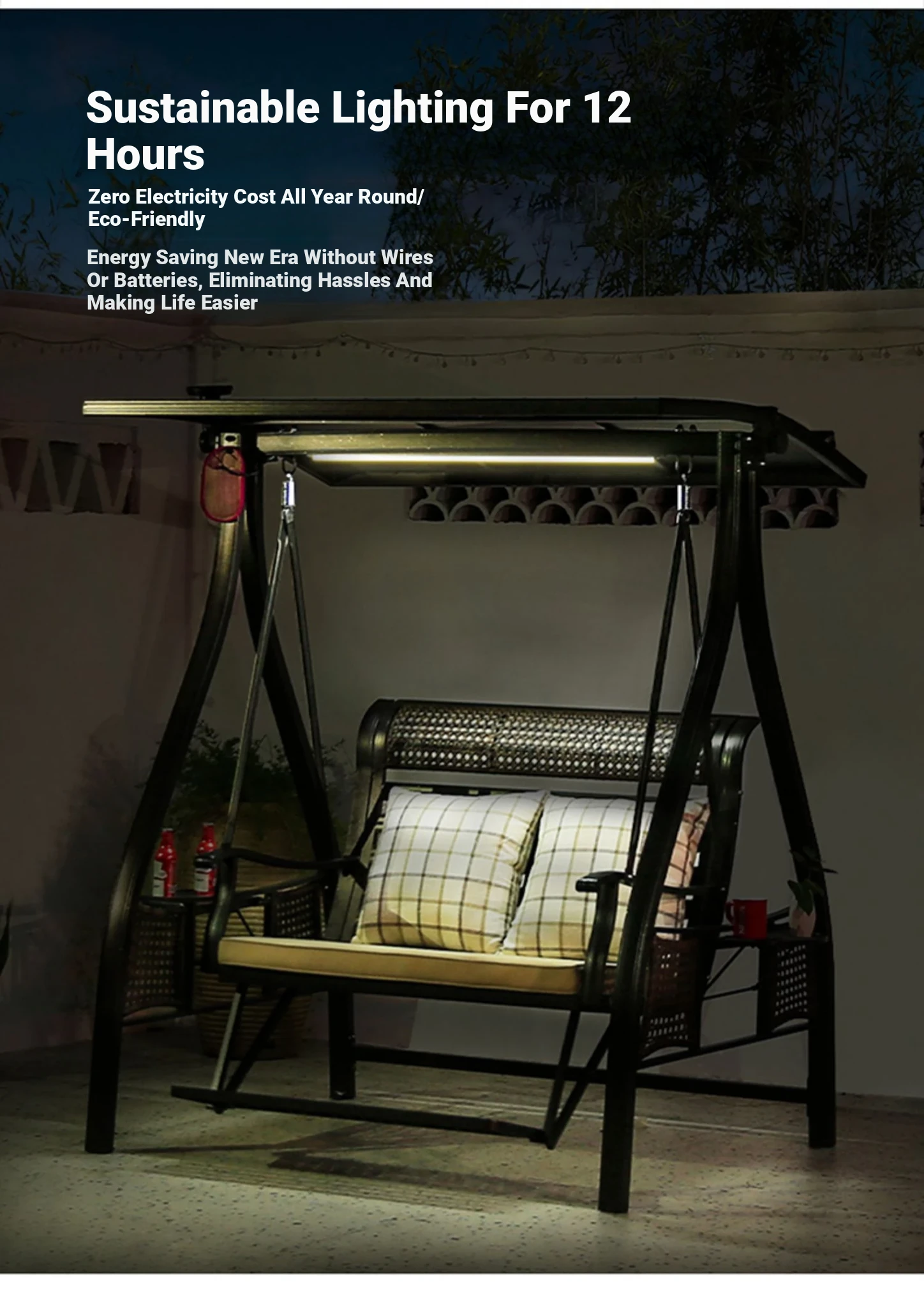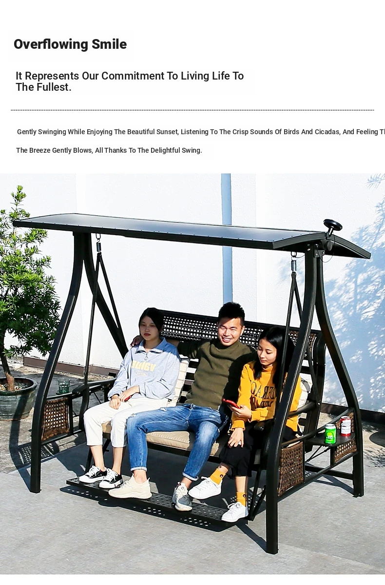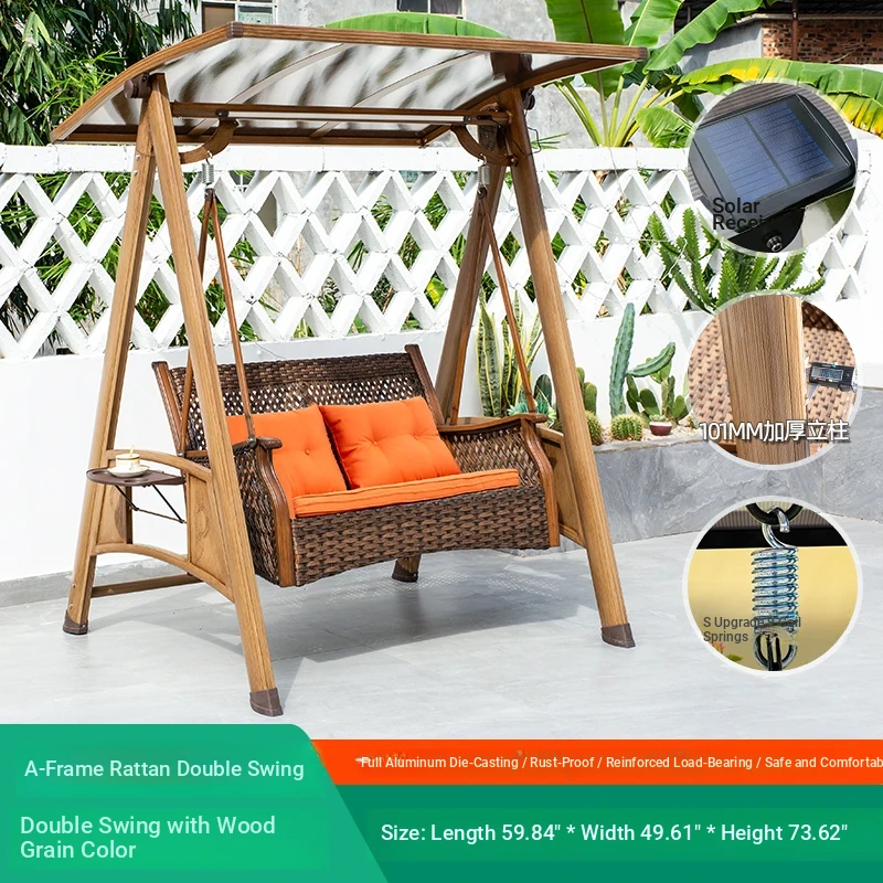 Outdoor Balcony Swing Chair - Rainproof Aluminum Alloy Patio Swing for 2-3 People, Stylish Solar-Powered Iron Garden Swing Seat