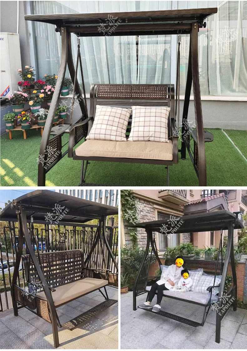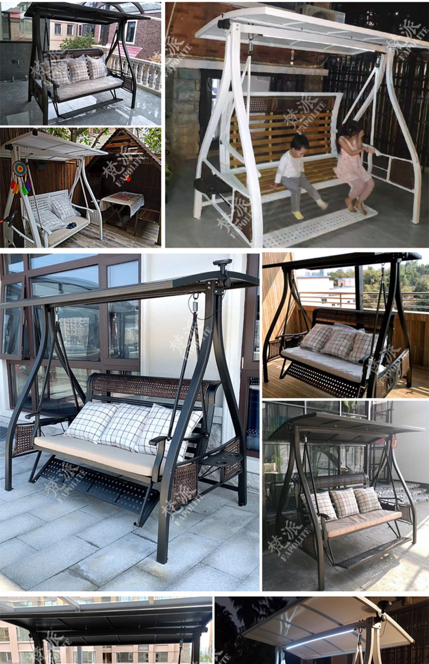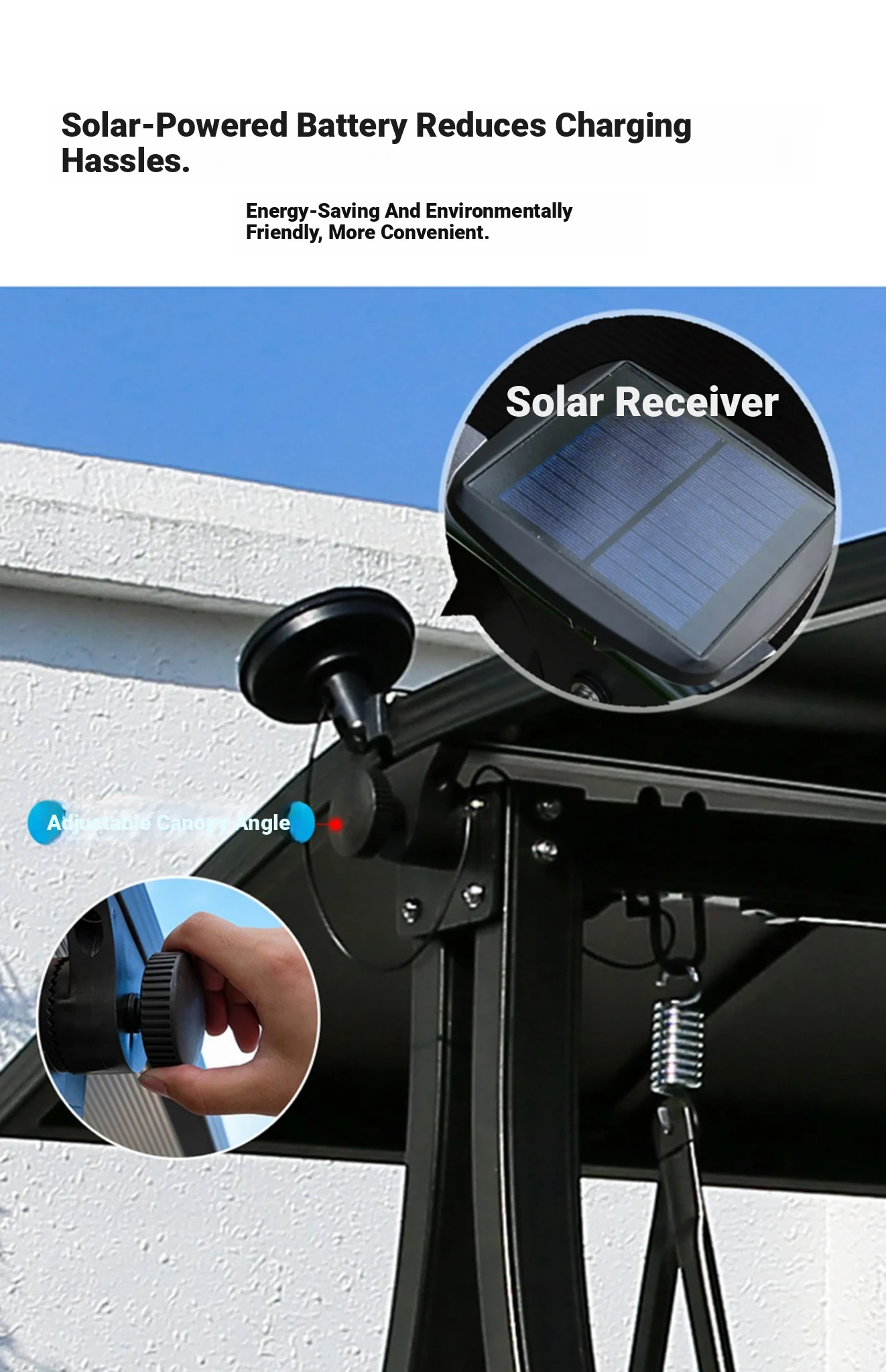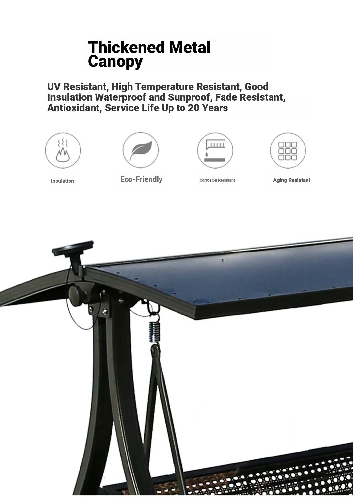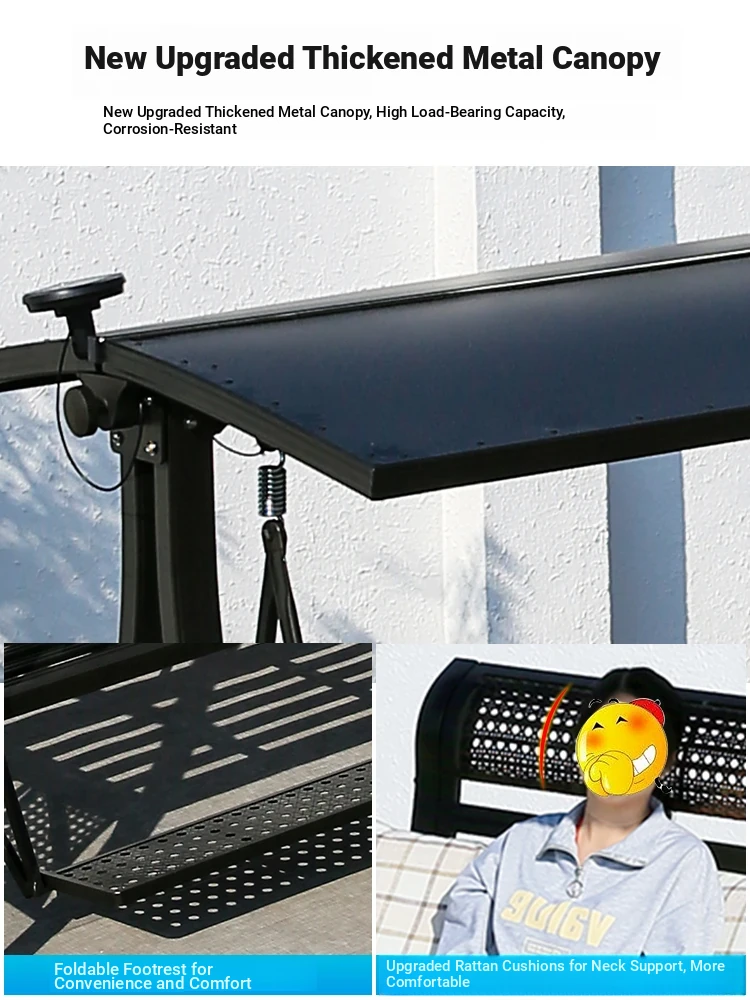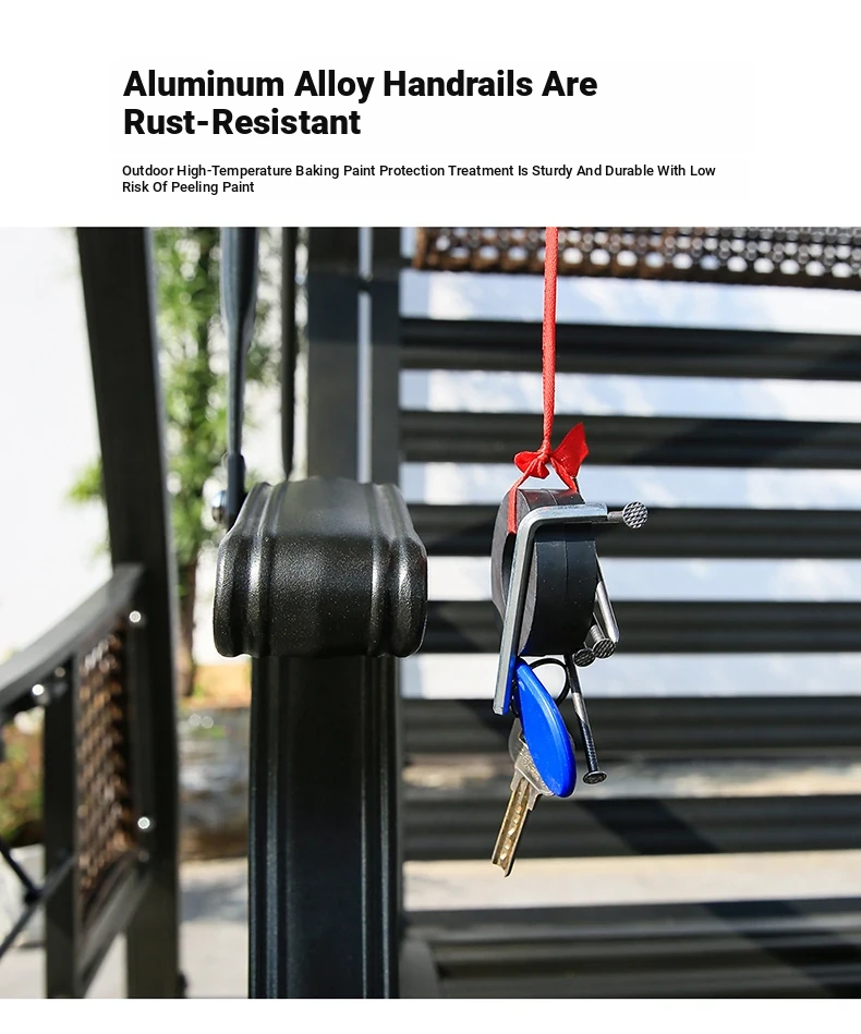 Outdoor Balcony Swing Chair - Rainproof Aluminum Alloy Patio Swing for 2-3 People, Stylish Solar-Powered Iron Garden Swing Seat
