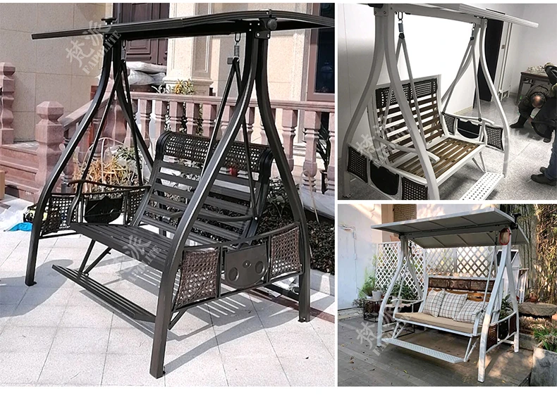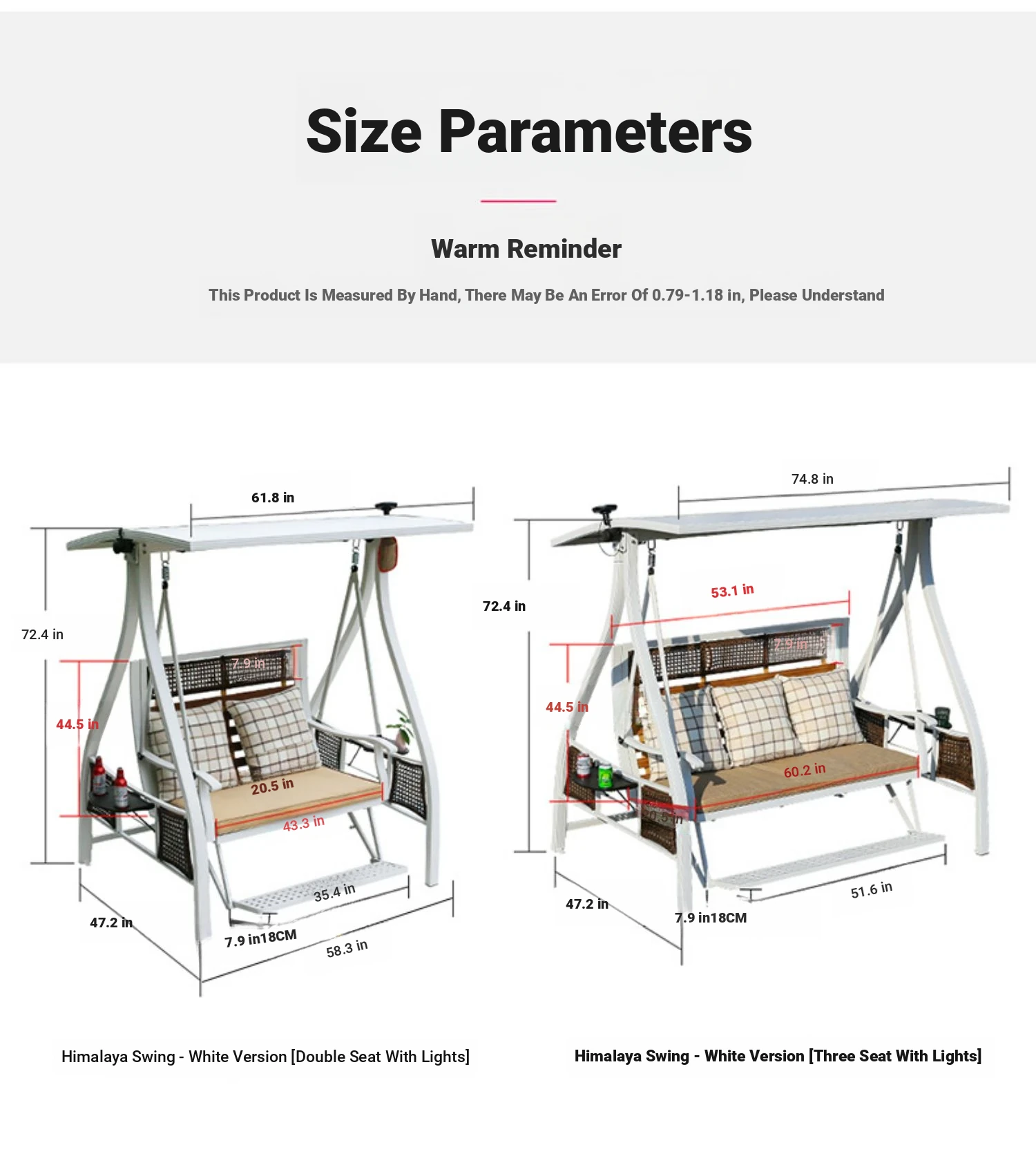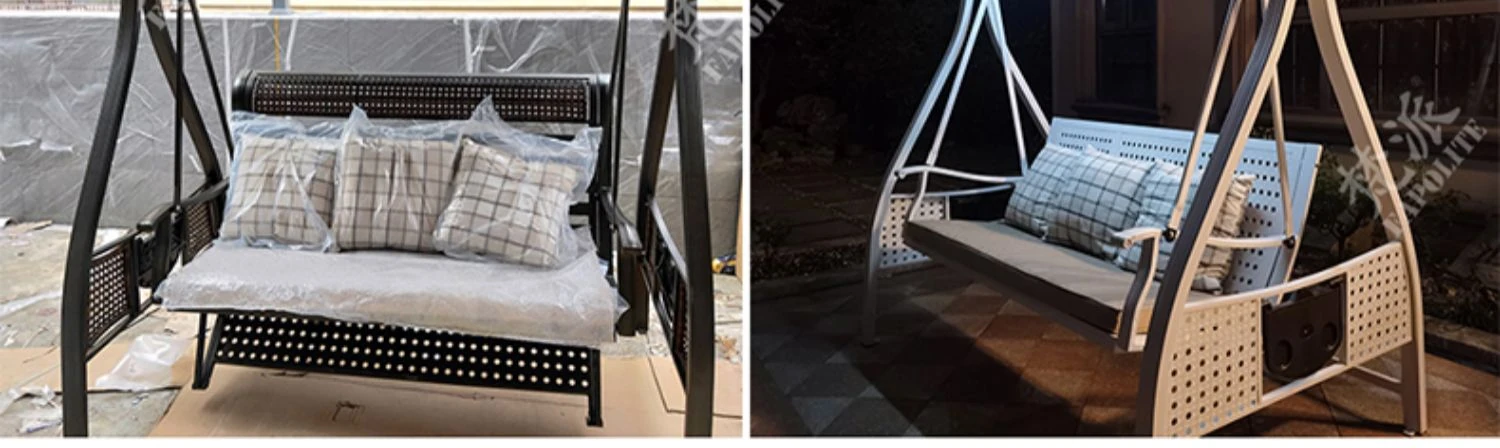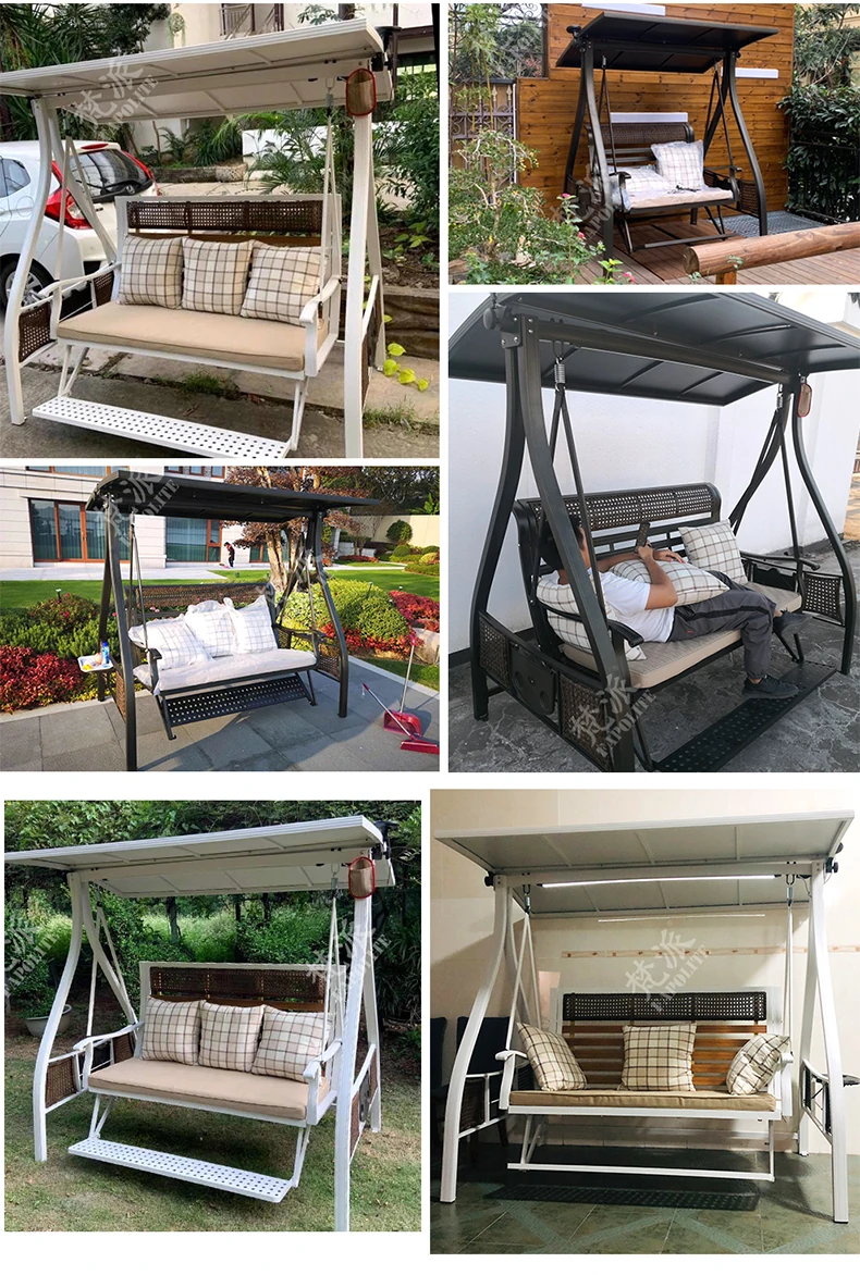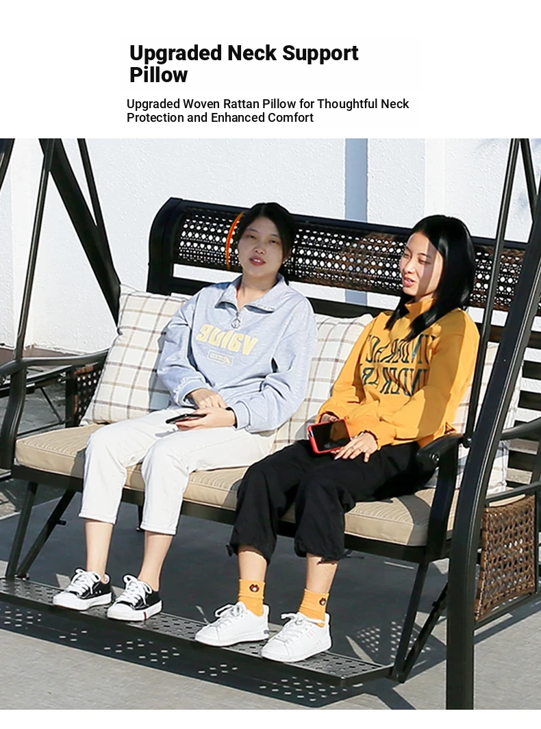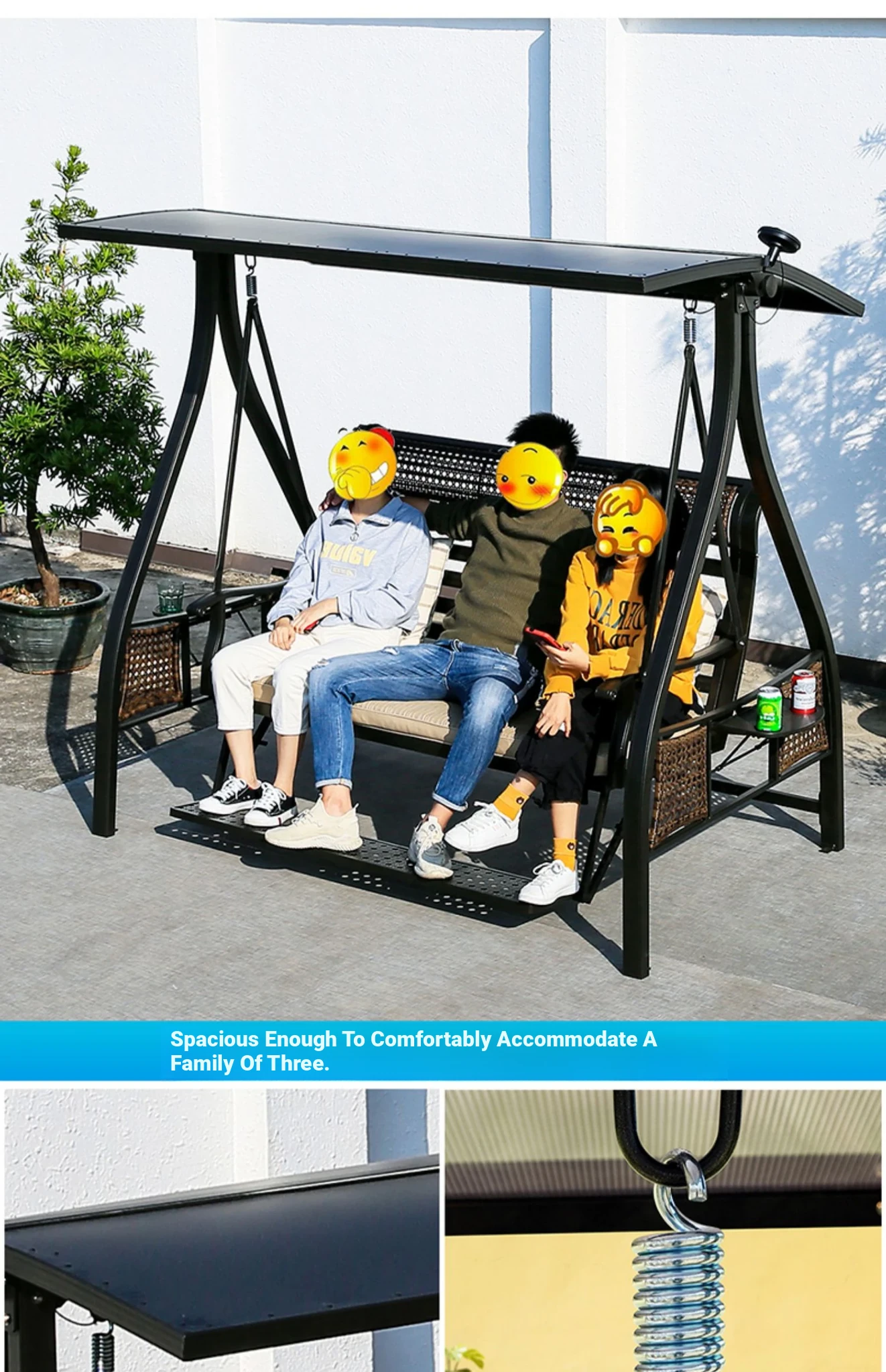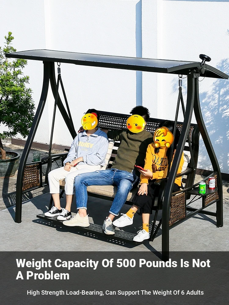 Outdoor Balcony Swing Chair - Rainproof Aluminum Alloy Patio Swing for 2-3 People, Stylish Solar-Powered Iron Garden Swing Seat