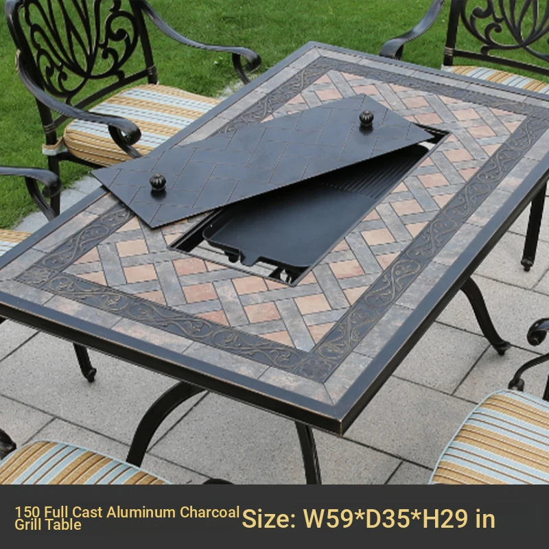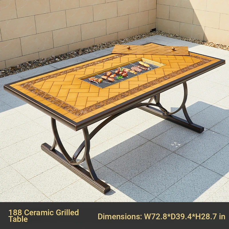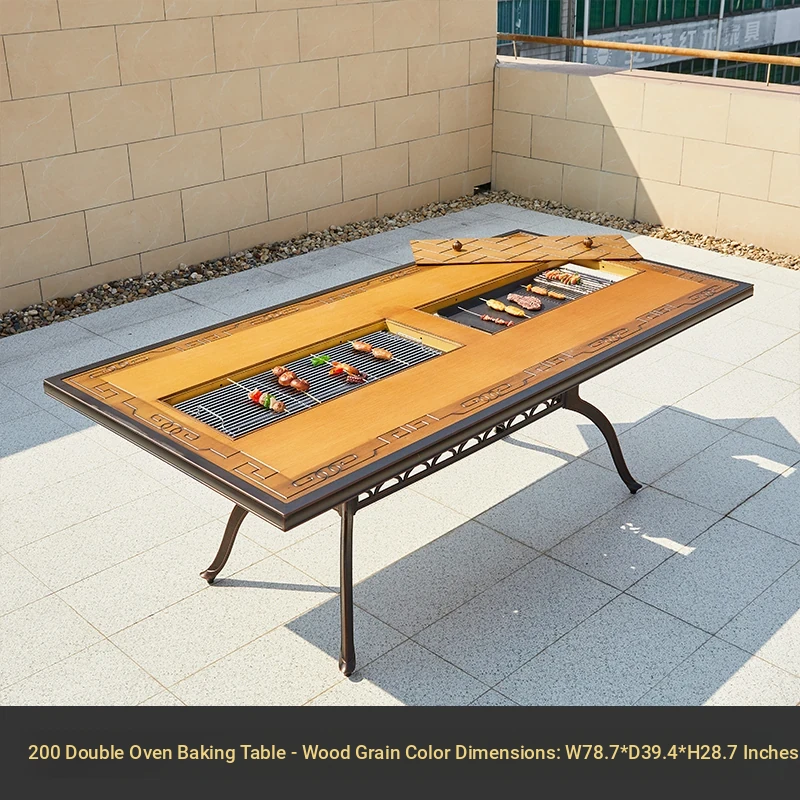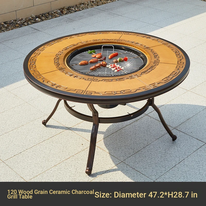 120 wood grain tile charcoal grill table(120 wood grain tile charcoal grill table)