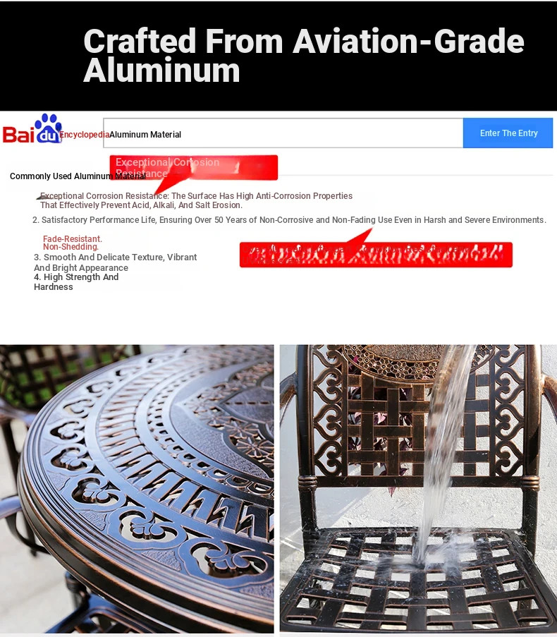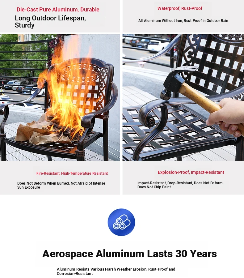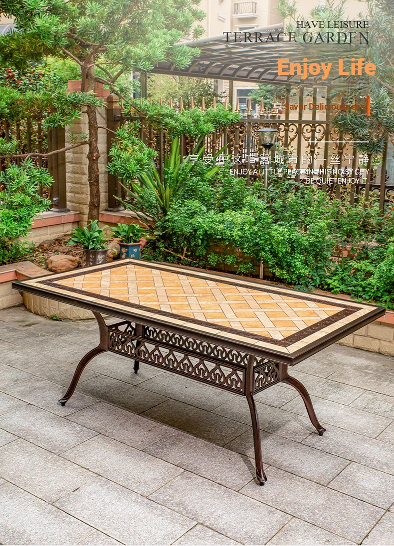 Outdoor Marble Tile Dining Table Set - Waterproof Aluminum Alloy Chairs for Relaxing Courtyards and Patios - Stylish New Chinese Design for BBQ and Gatherings