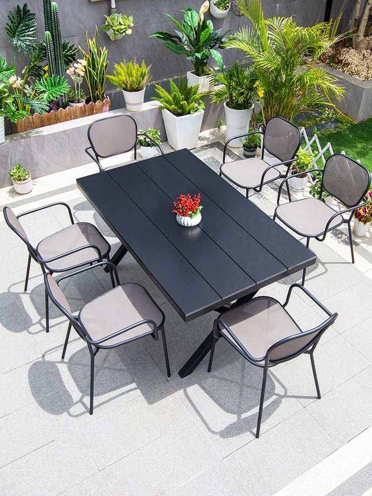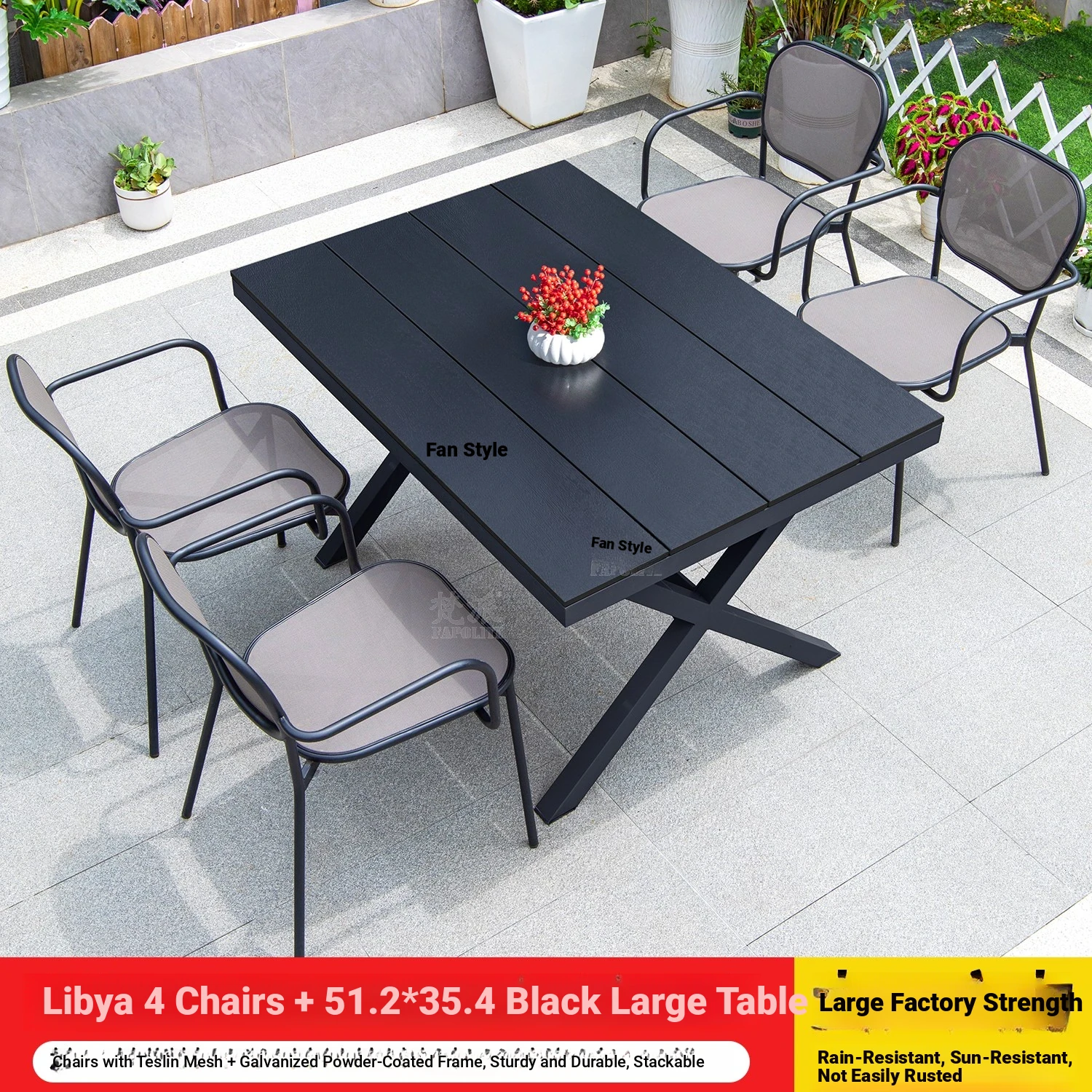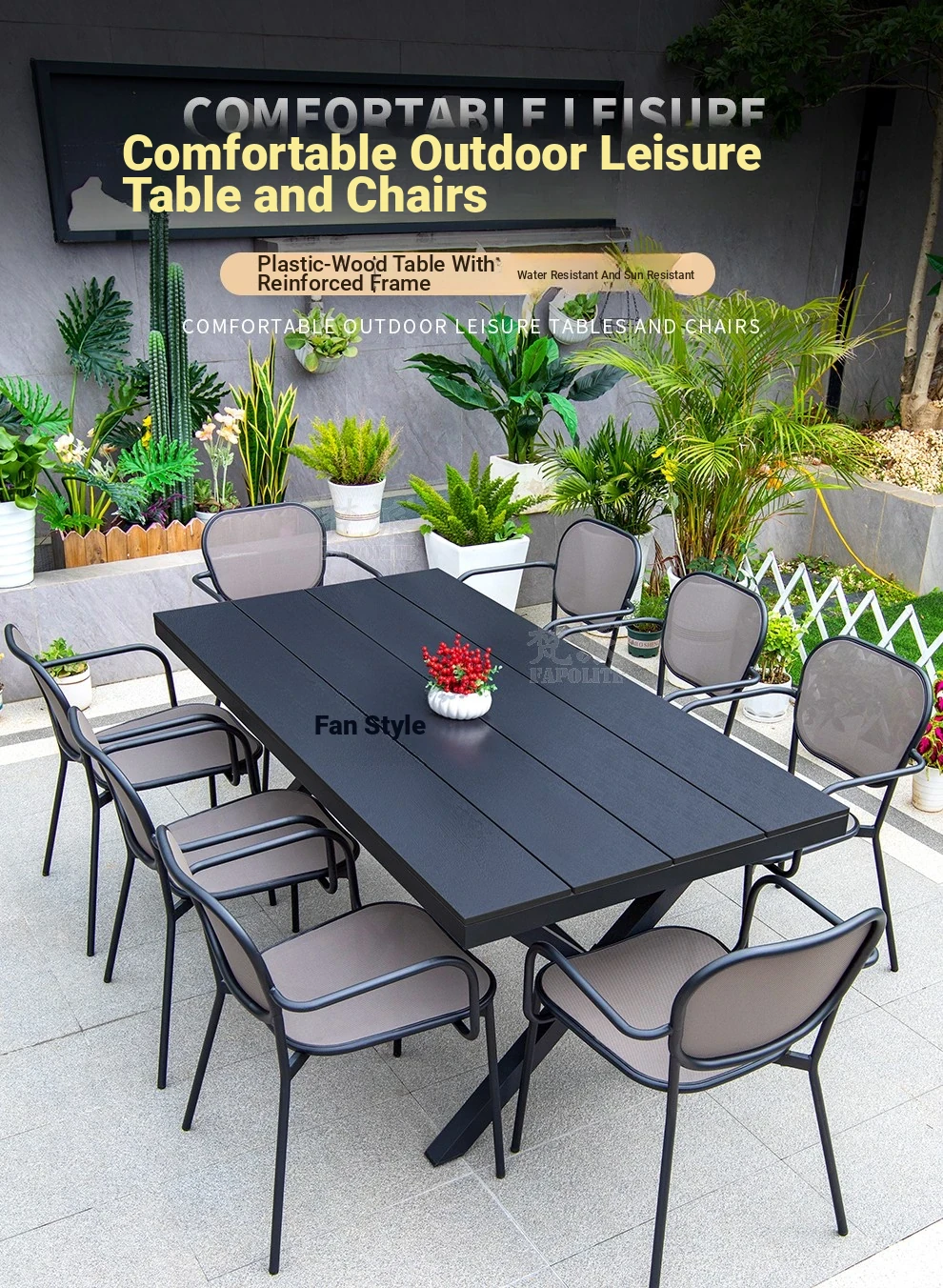 Outdoor Patio Dining Set - Commercial Grade Furniture for Gardens, Balconies, and Villas - Weather-Resistant Plastic-Wood Table and Chair Combo for Ultimate Comfort and Style