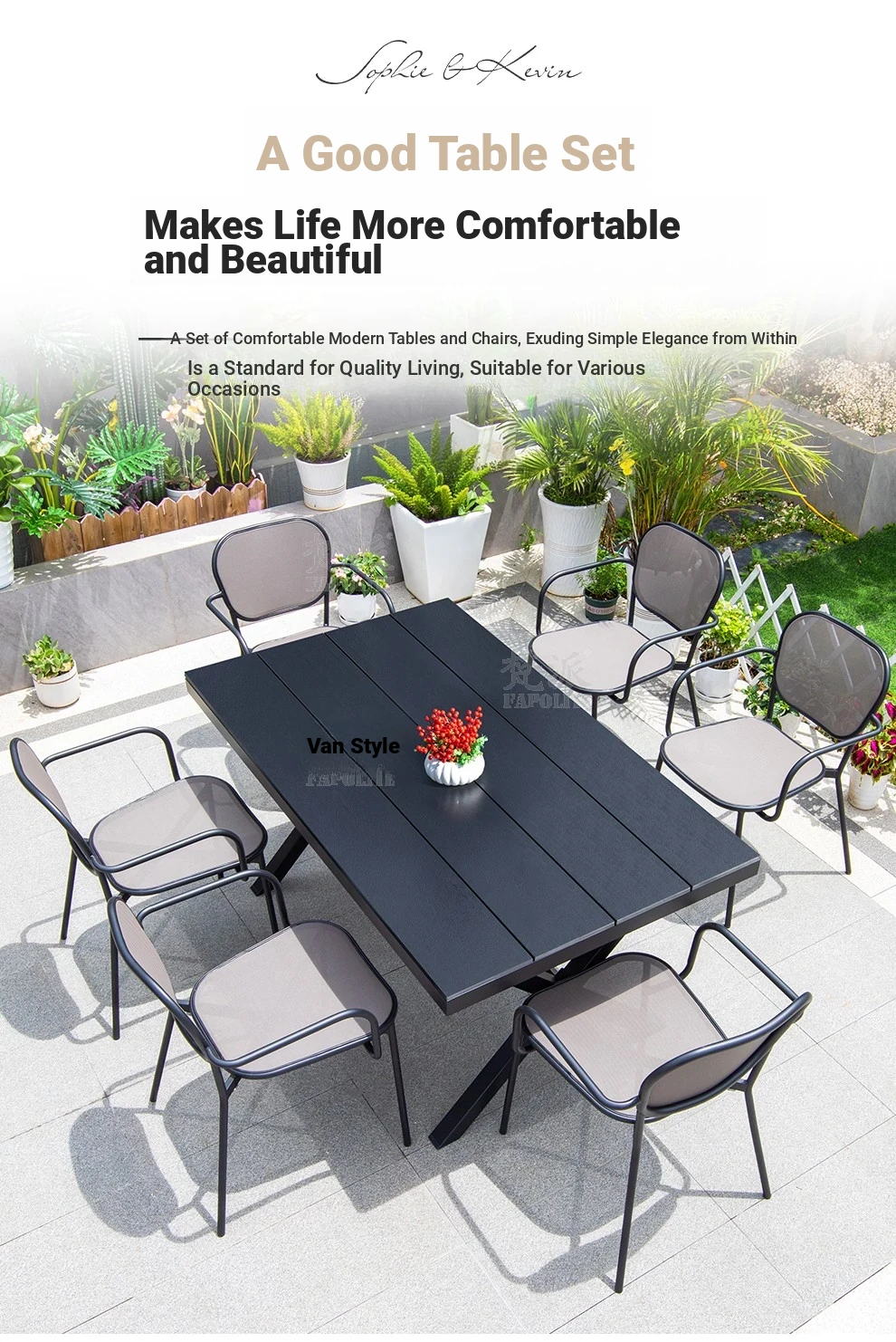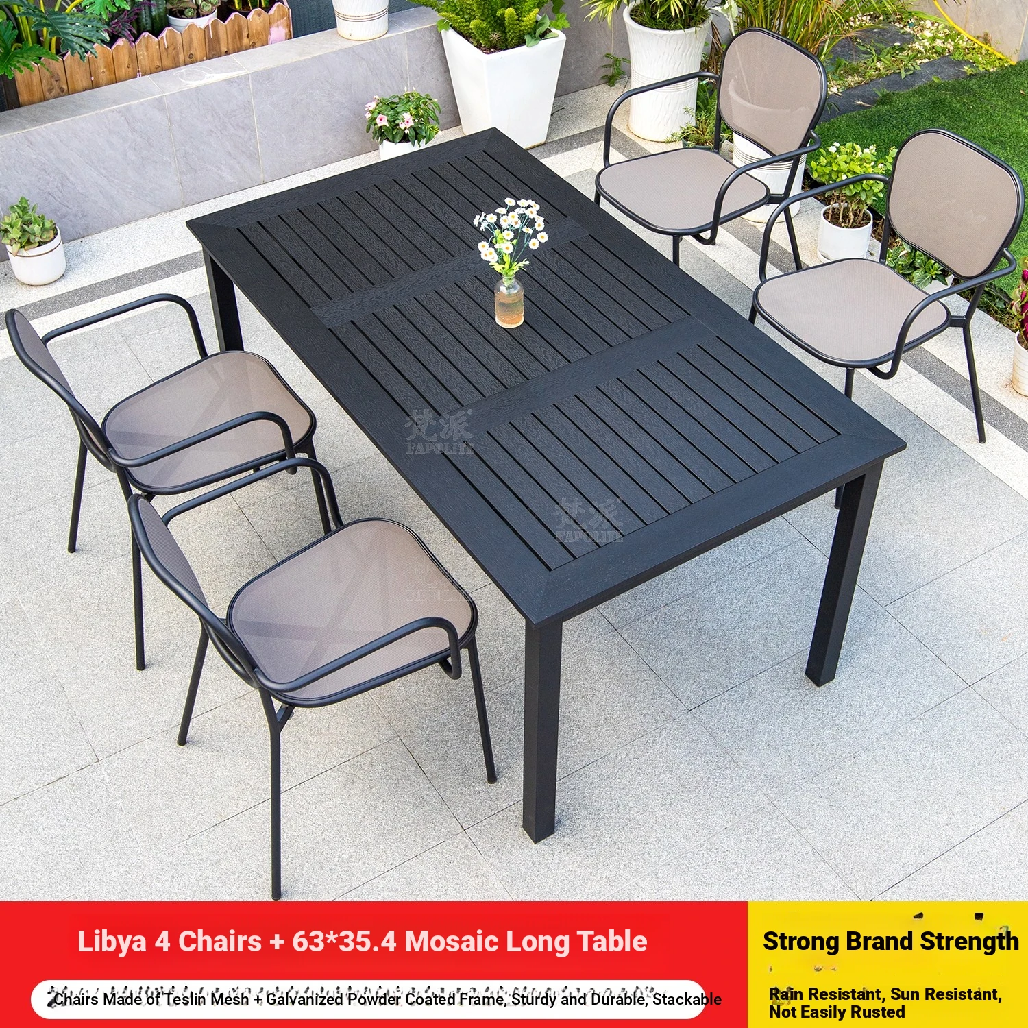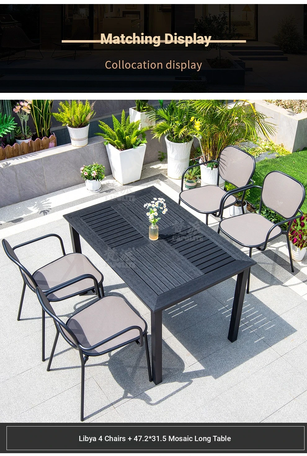 Outdoor Patio Dining Set - Commercial Grade Furniture for Gardens, Balconies, and Villas - Weather-Resistant Plastic-Wood Table and Chair Combo for Ultimate Comfort and Style