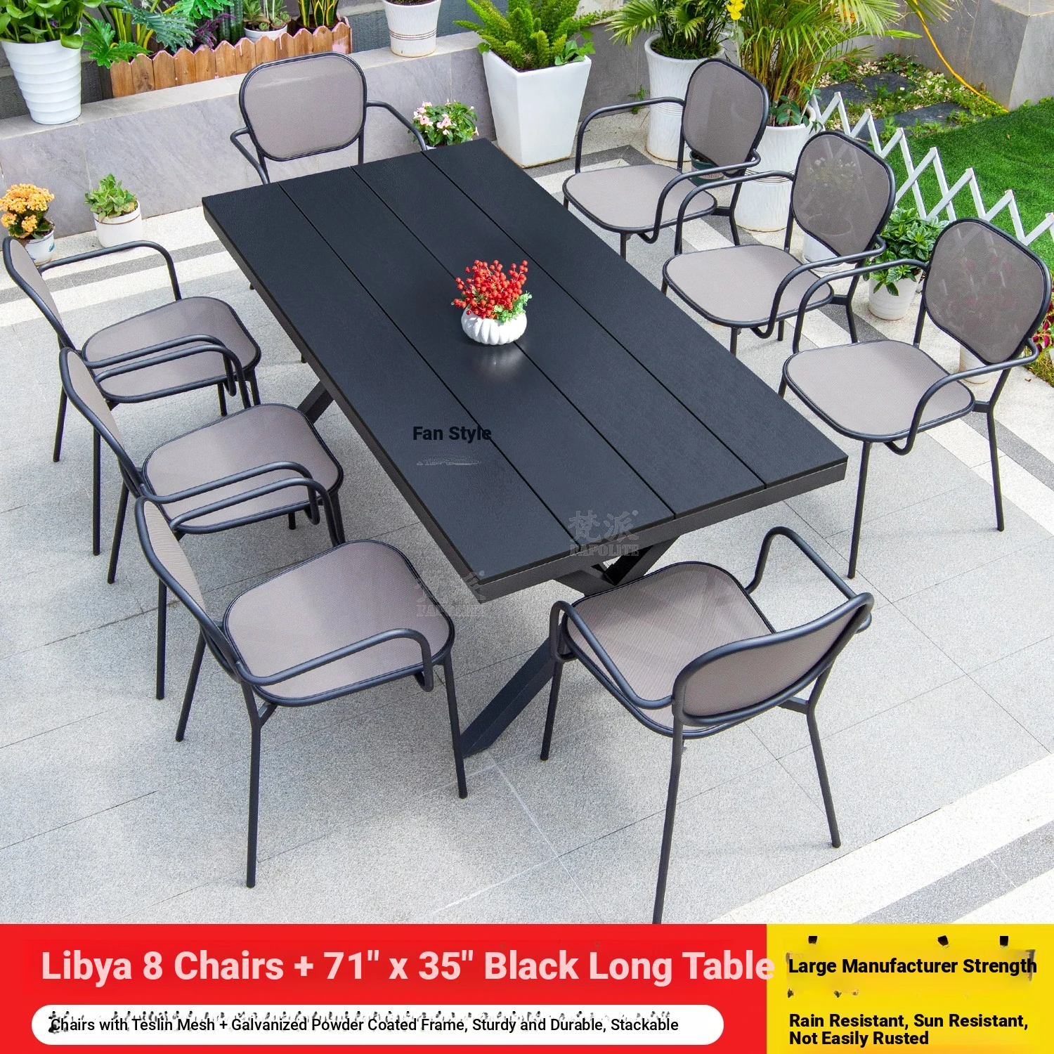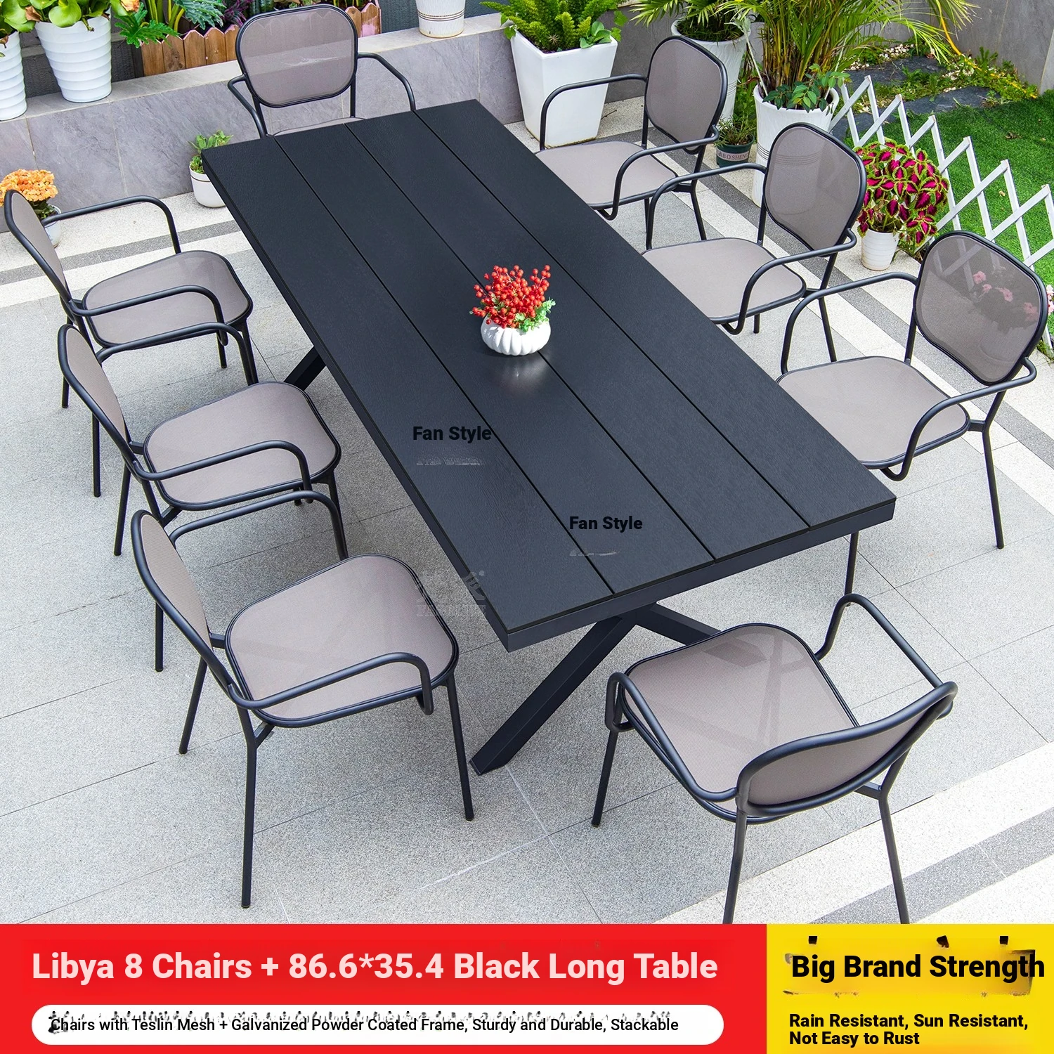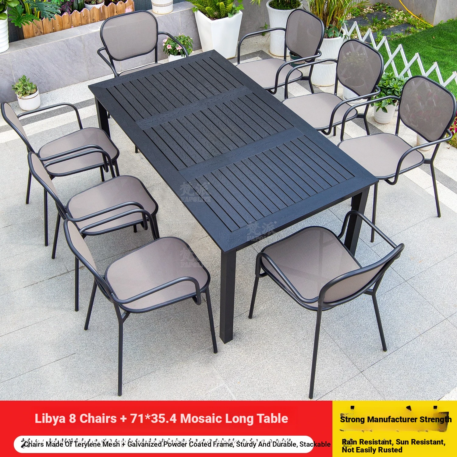 Libya 8 chairs +220 black large board long table
