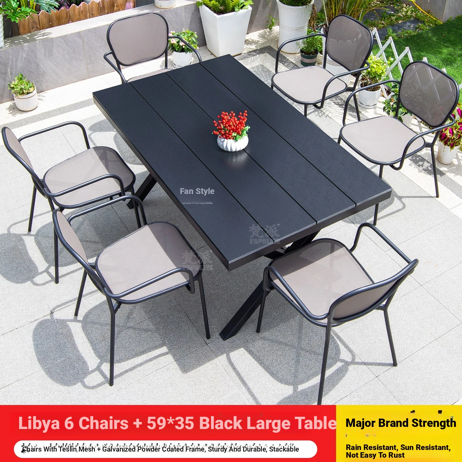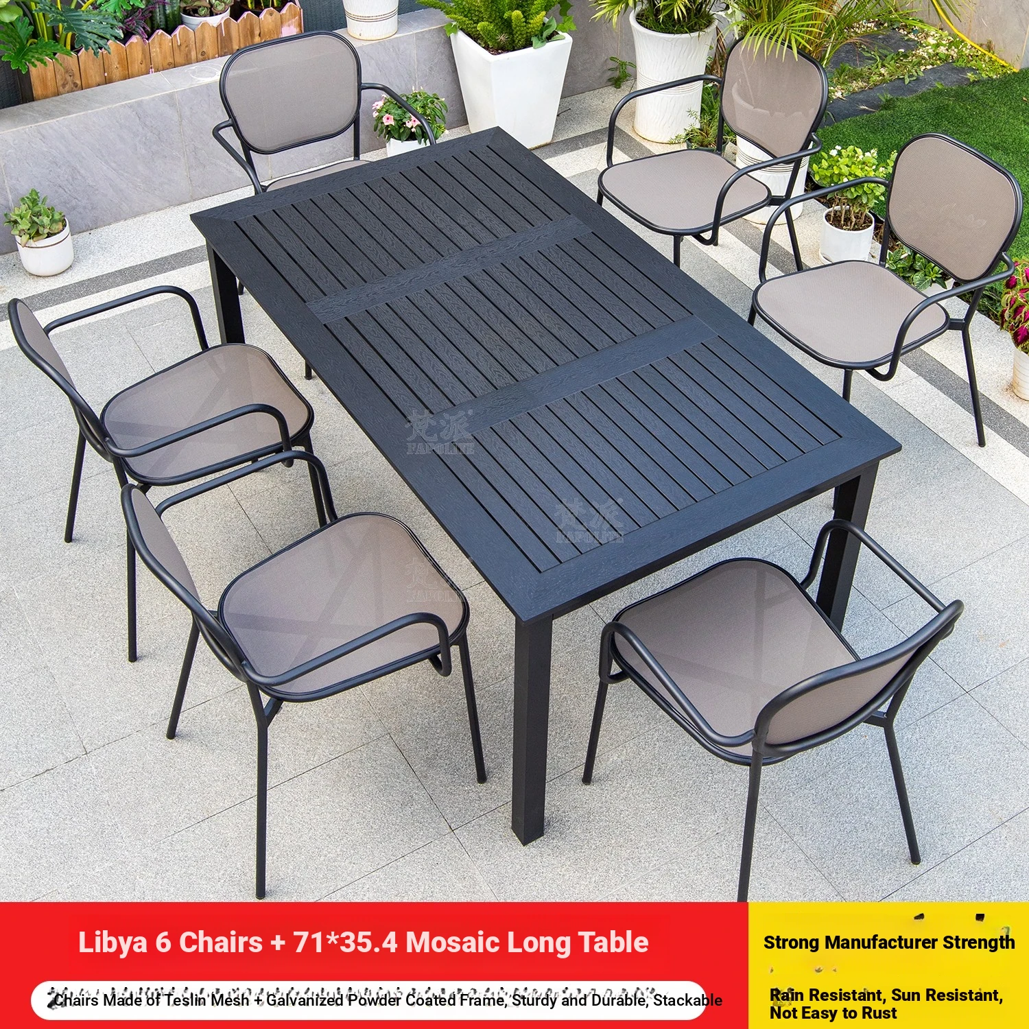 Libya 6 chairs +220 black large board long table