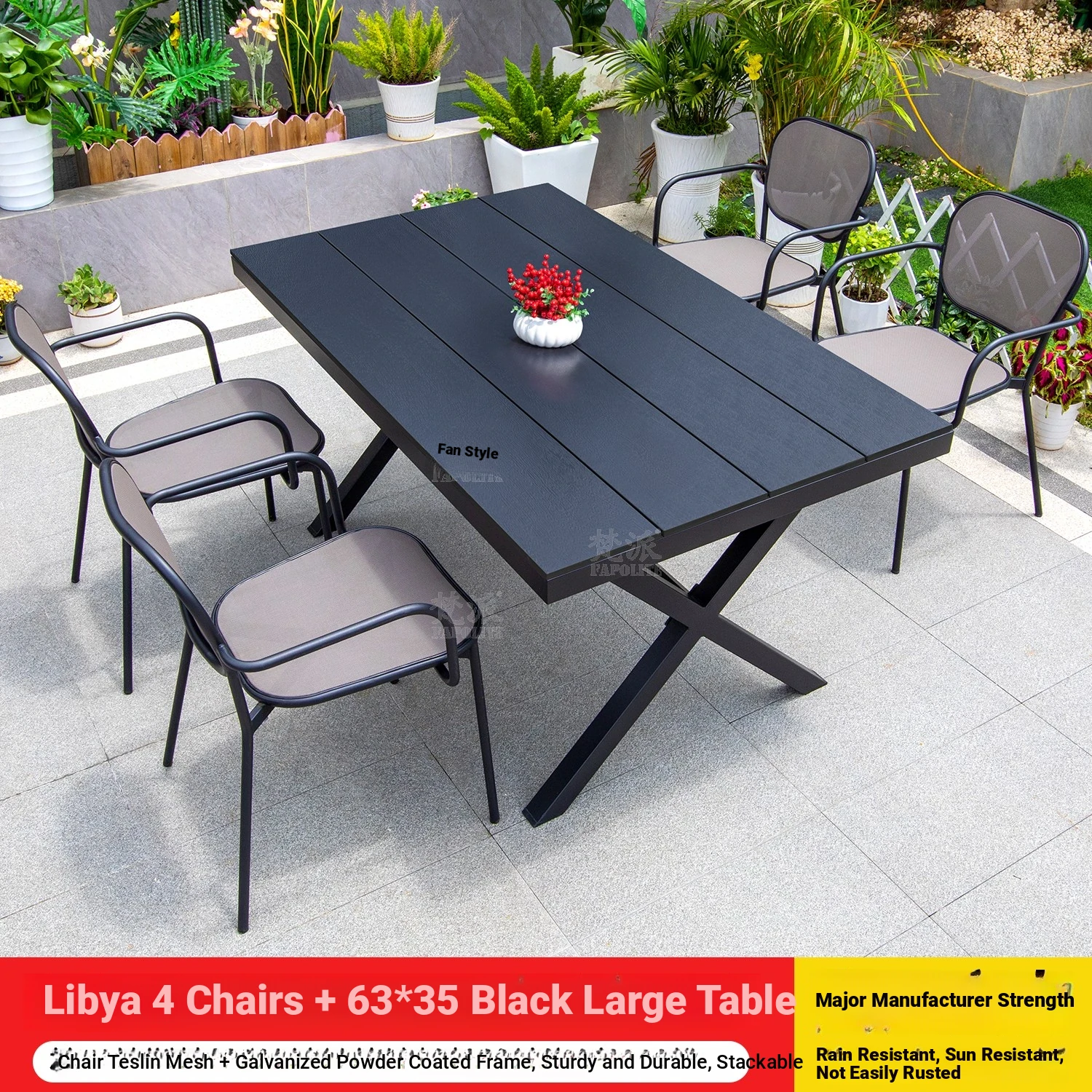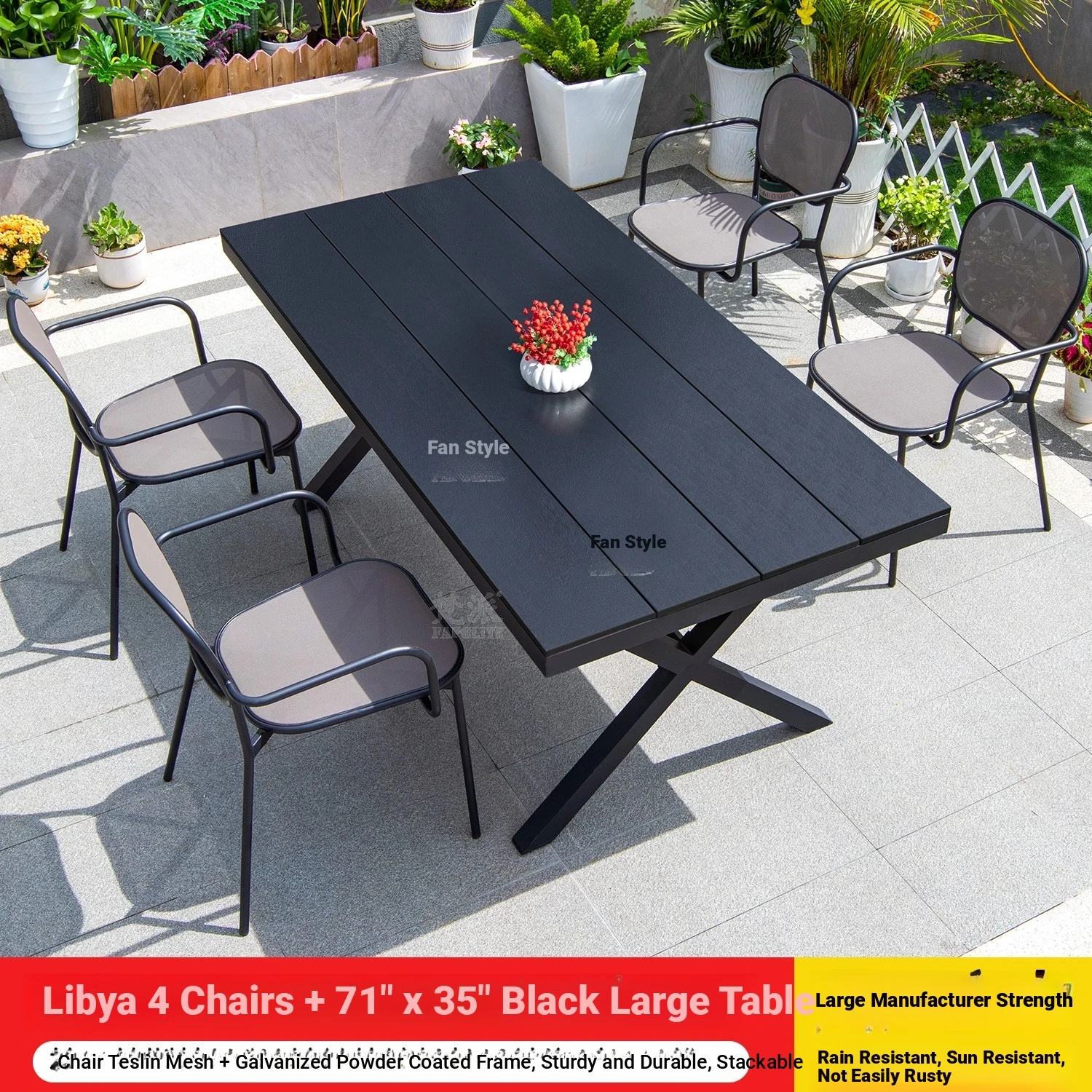 Libya 4 chairs +150 Black large board long table