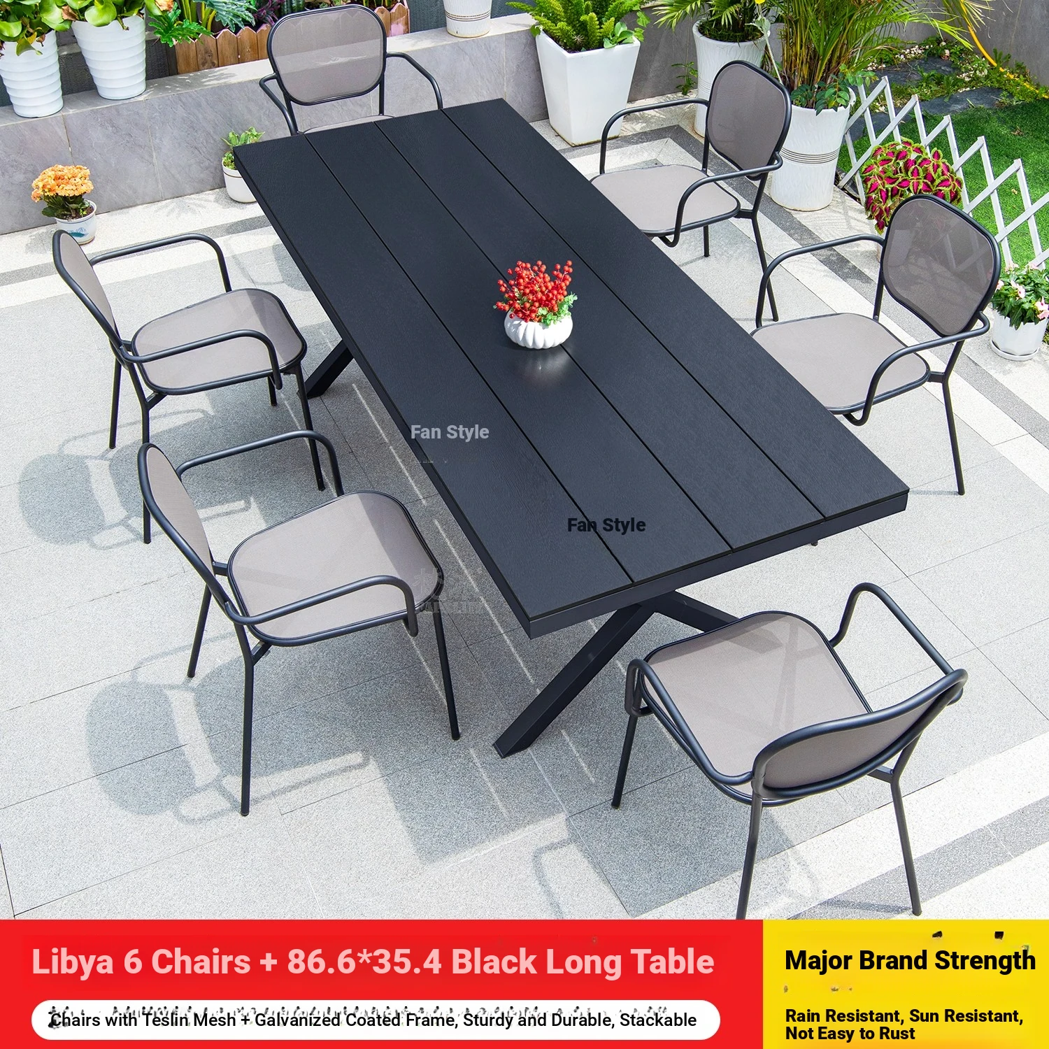 Libya 6 chairs +180 Black large board long table
