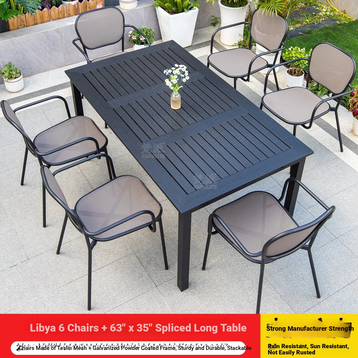 Libya 6 chairs +150 Black large board long table