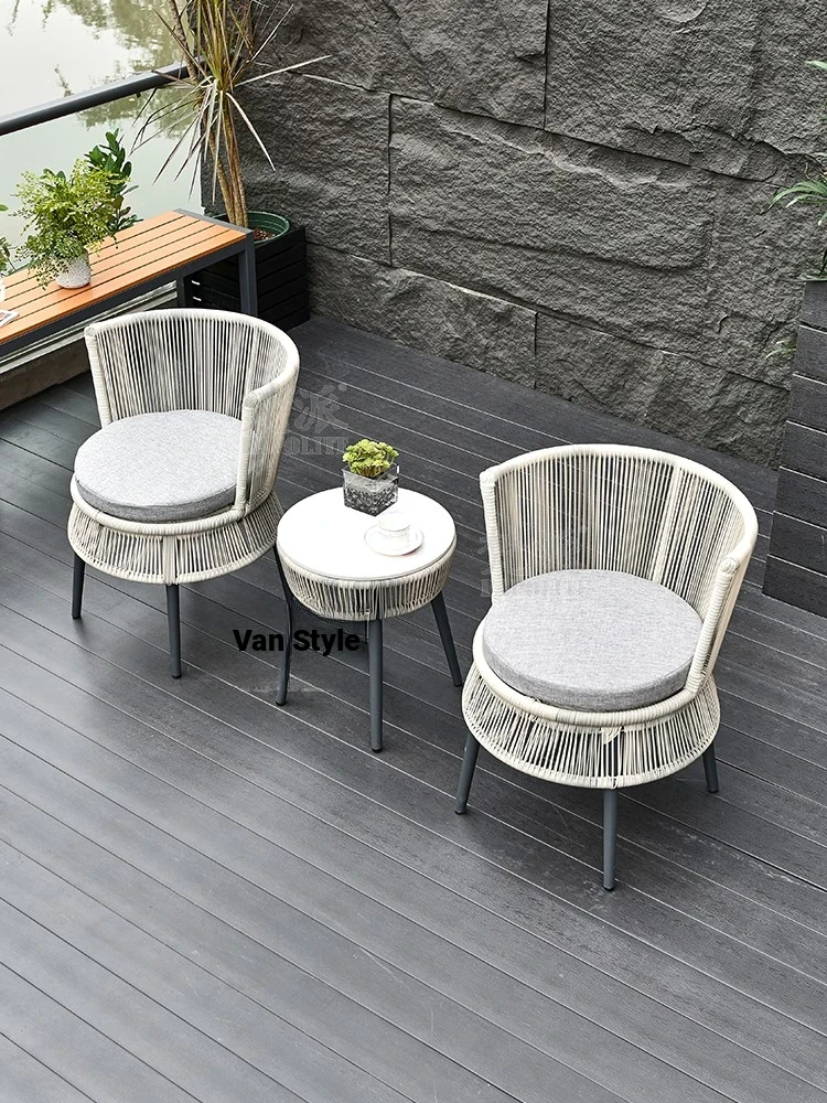 Chinese Style Outdoor Balcony Leisure Table and Chair Set - Waterproof and Sun-Resistant Wrought Iron Garden Furniture for Small Spaces, Perfect for Courtyards and Patios