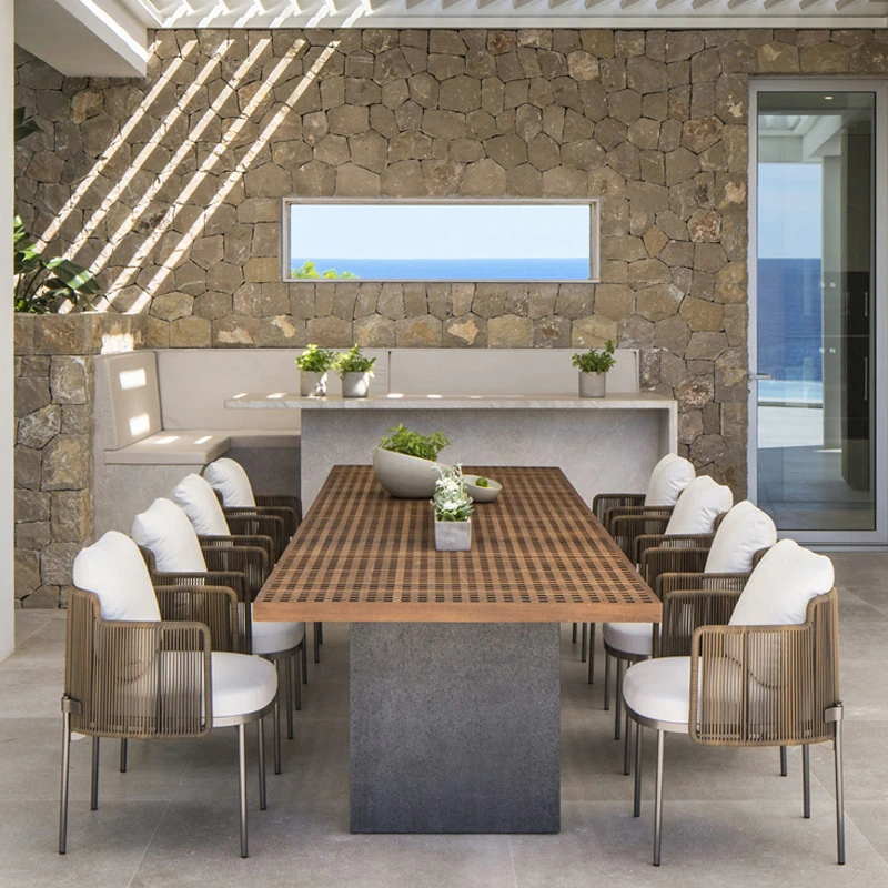 Vibrant Outdoor Solid Wood Sofa Set - Teak Table and Chairs for Villa Patios, Garden, and Terrace - Weather-Resistant and Durable for Ultimate Relaxation