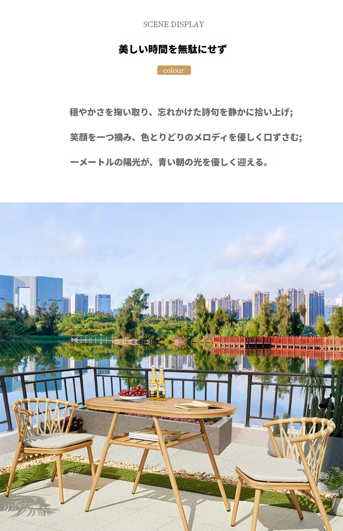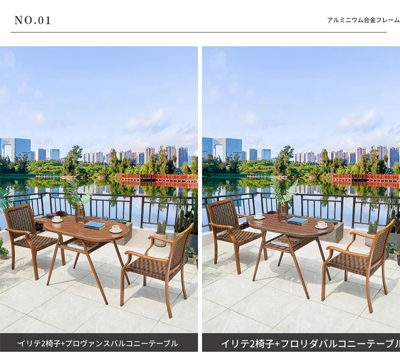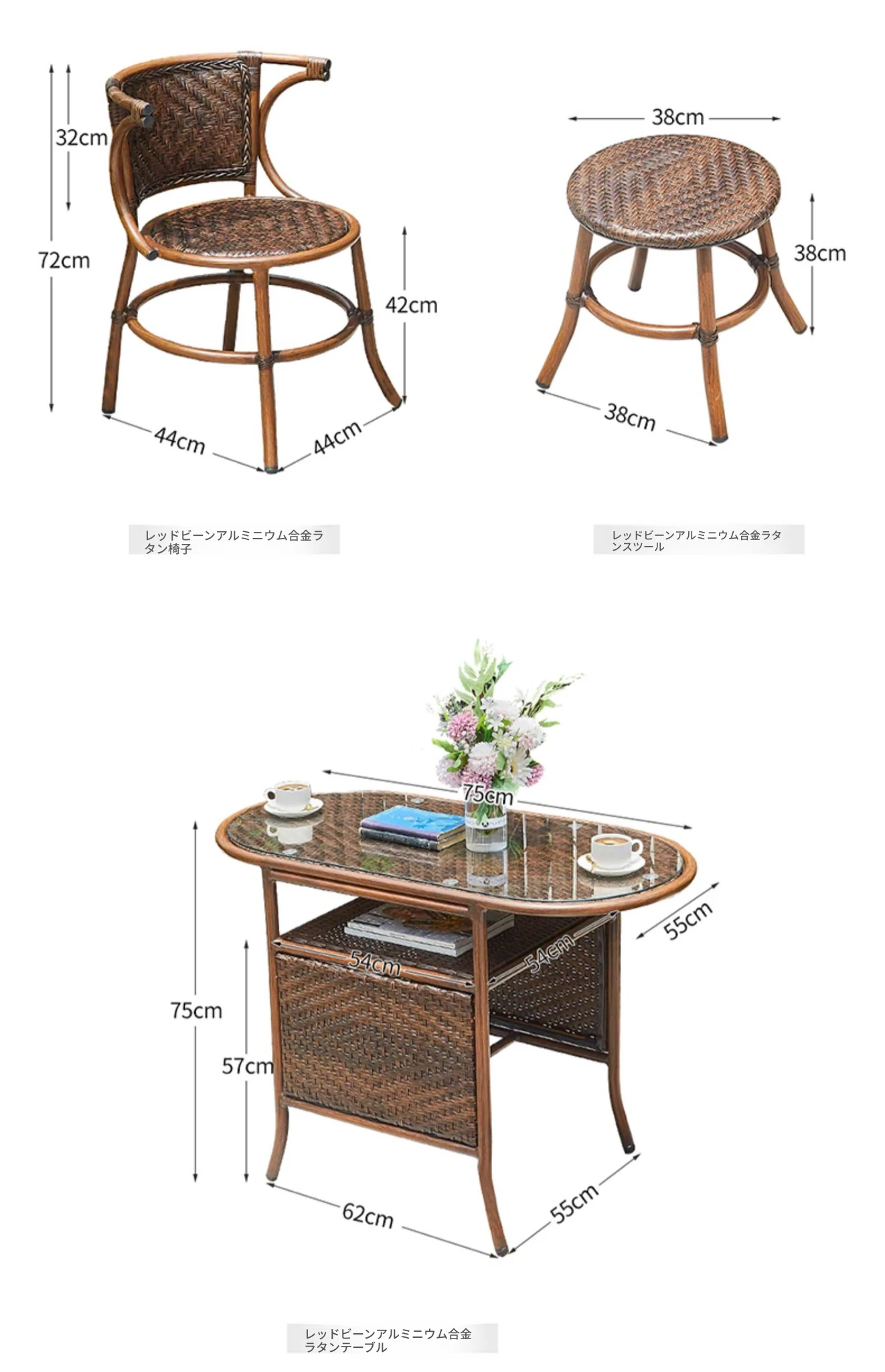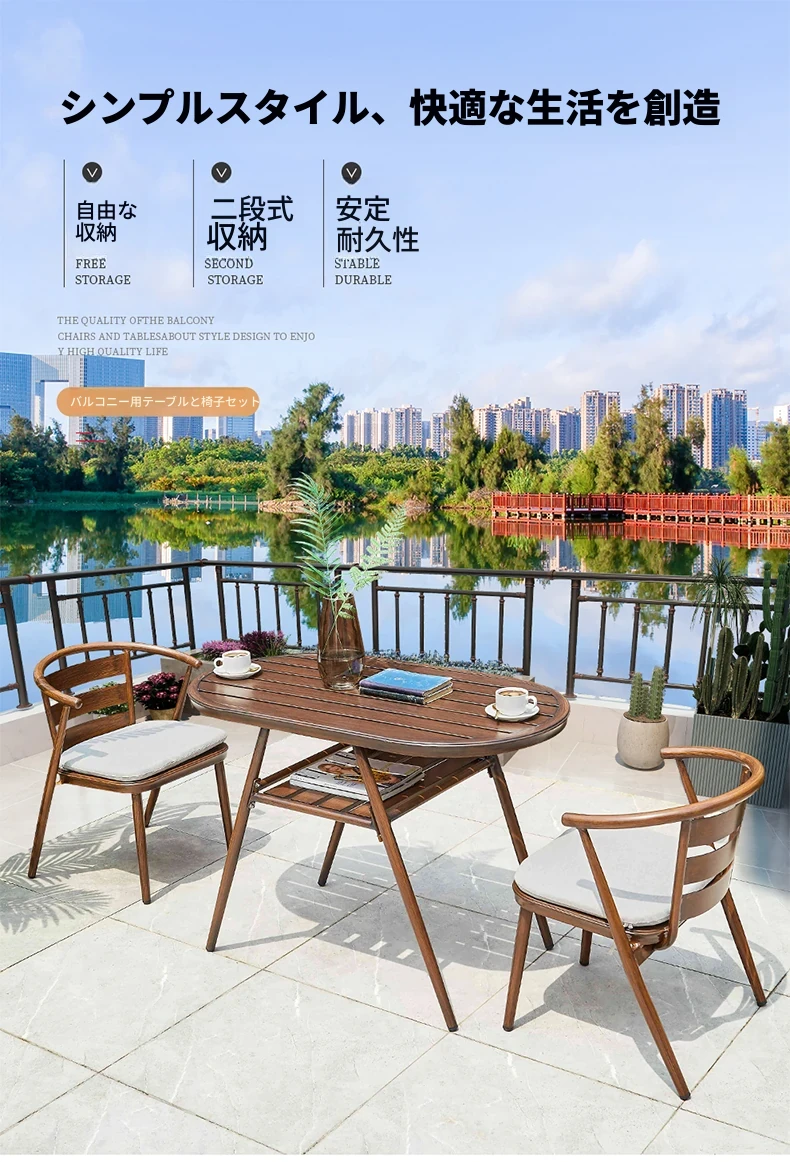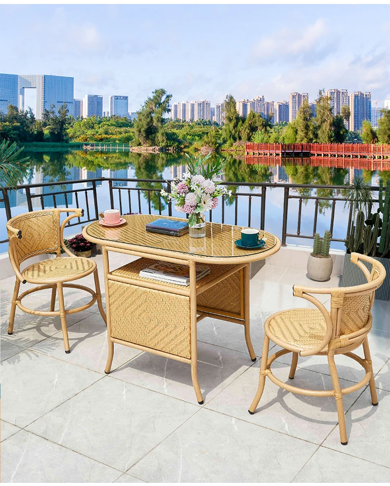 バルコニー用3点セット!防水仕様のアルミ合金製テーブルと藤編みの椅子で、庭や屋内外でのリラックスタイムを楽しもう。おしゃれで機能的、あなたの空間を彩る完璧なアイテムです!