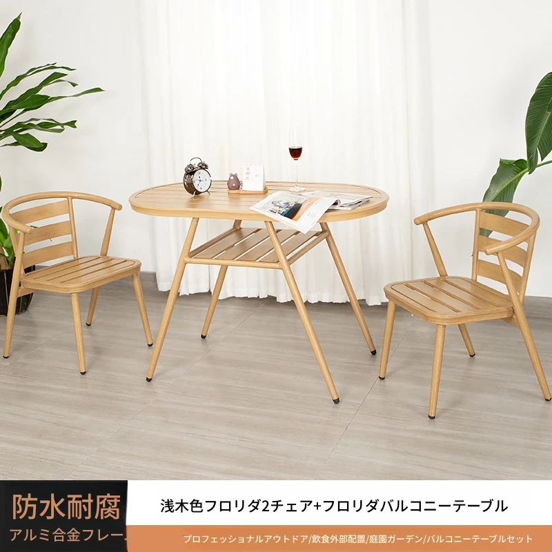 【浅木纹】フリアロープアームレストなし椅子2脚+フロリダテーブル 【浅木纹】フリアロープアームレストなし椅子2脚+フロリダテーブル