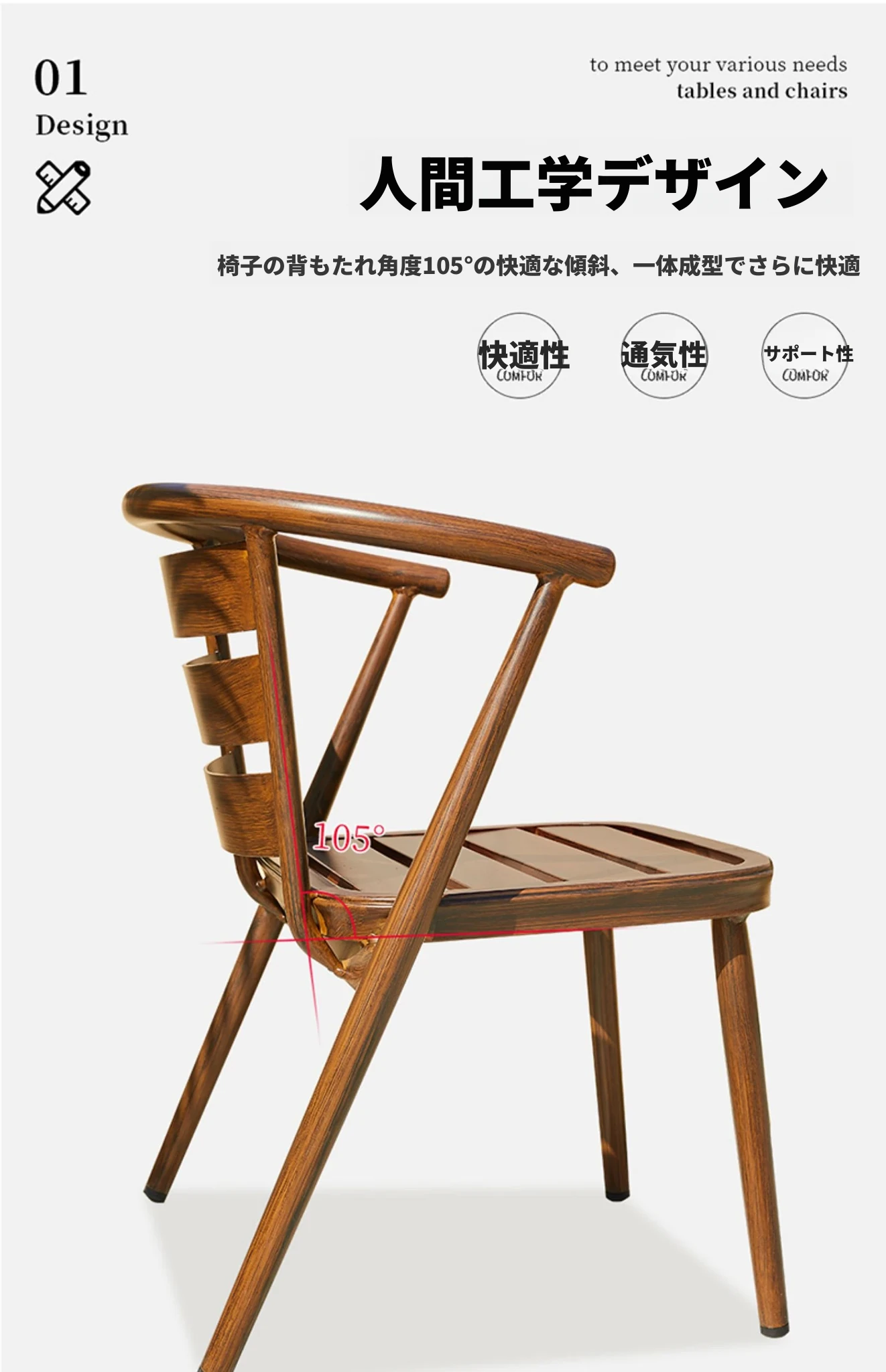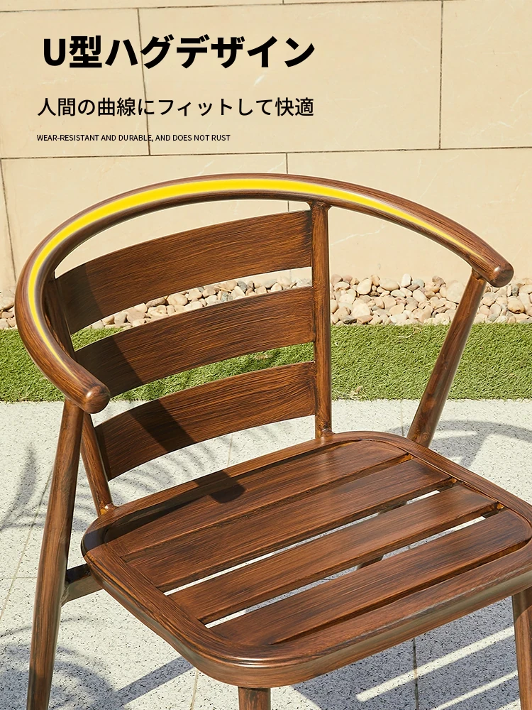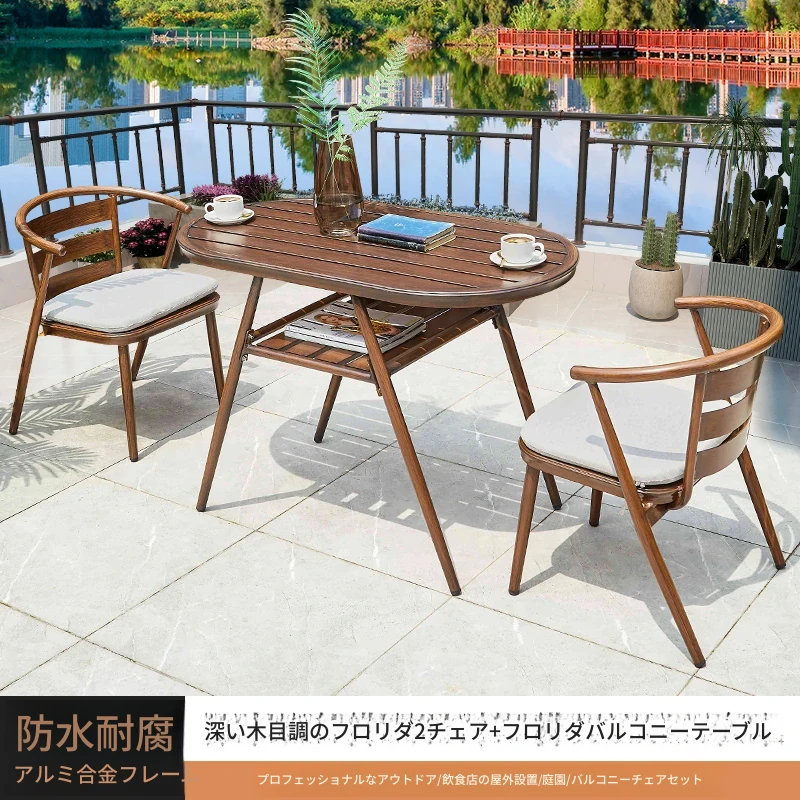 【深木纹】フリアアルミ板椅子2脚+フロリダテーブル 【深木纹】フリアアルミ板椅子2脚+フロリダテーブル
